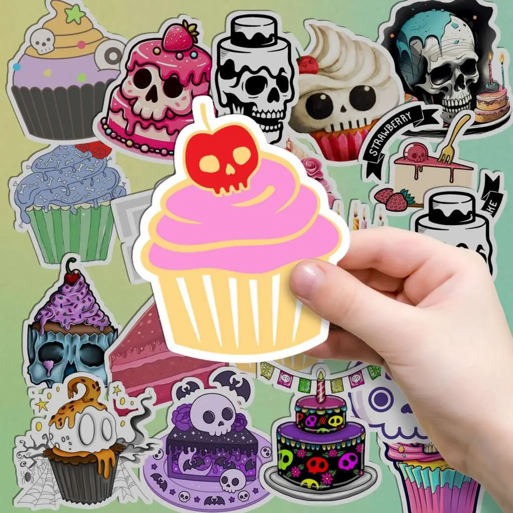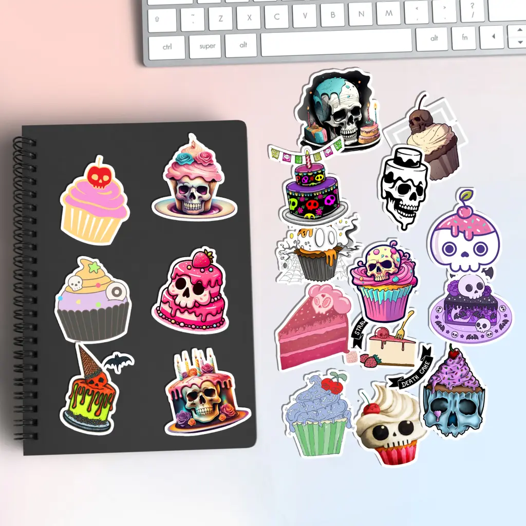 Indulge in darkness with our 18 Pcs Cake Skull Stickers! These aesthetic creepy cute pastel goth decals feature delicious gothic cupcakes and skull-topped sweets. Made of waterproof vinyl stickers for Kindles and laptops, they offer a durable finish. Perfect goth gifts for women. Enhance your alt-style stationery today. 👉 Click Add to Cart to treat yourself!