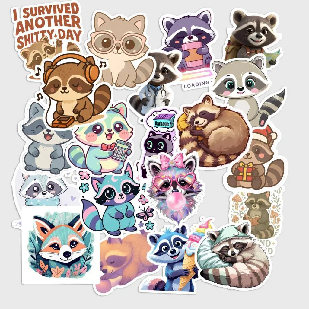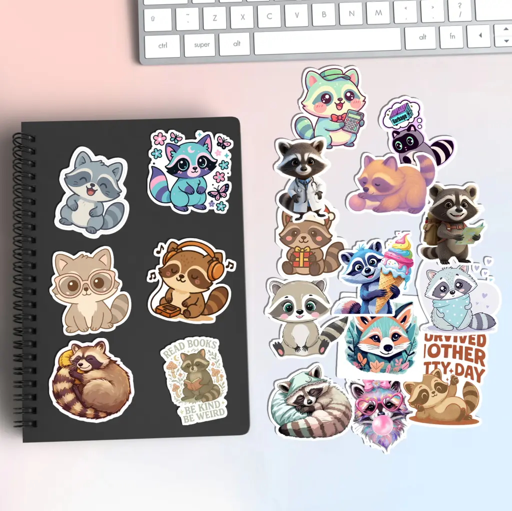 Embrace the cuteness with our 18 Pcs Raccoon Pastel Stickers! These cute kawaii aesthetic trash panda decals feature fluffy raccoons in soft pink and lilac tones. Made of waterproof vinyl stickers for Kindles and laptops, they offer a durable finish. Perfect raccoon lover gifts for girls. Enhance your soft girl stationery today. 👉 Click Add to Cart to adopt your pastel trash panda!