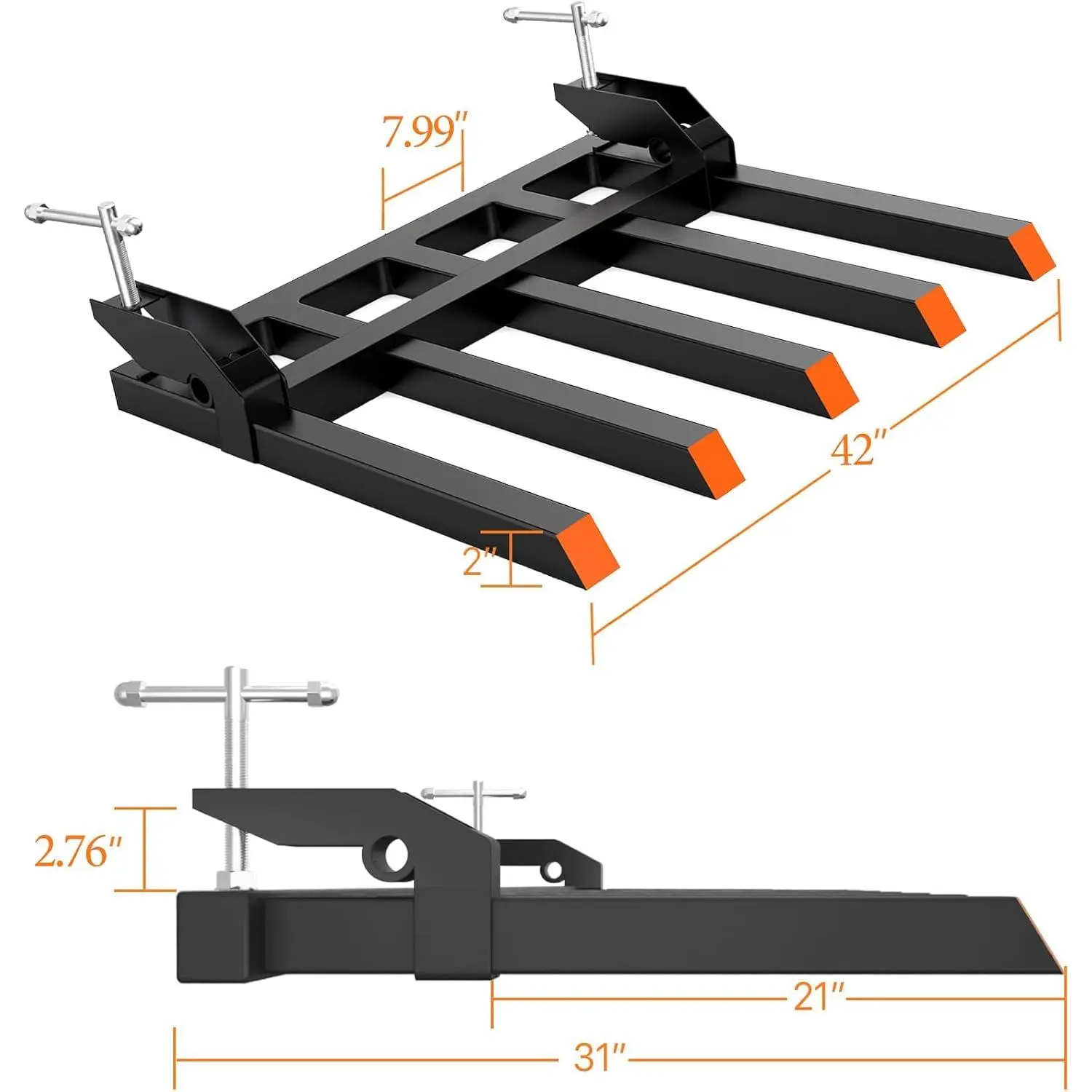 ·Wide Compatibility: Easily attach these clamp-on forks to most standard tractor buckets and skid steer loaders for quick lifting and moving capability.