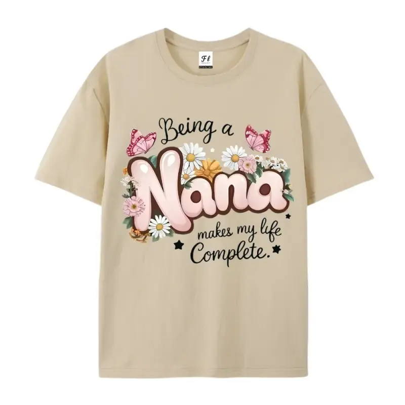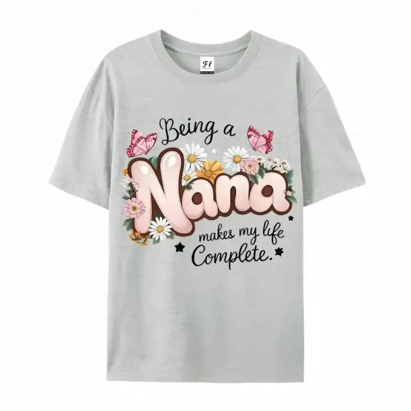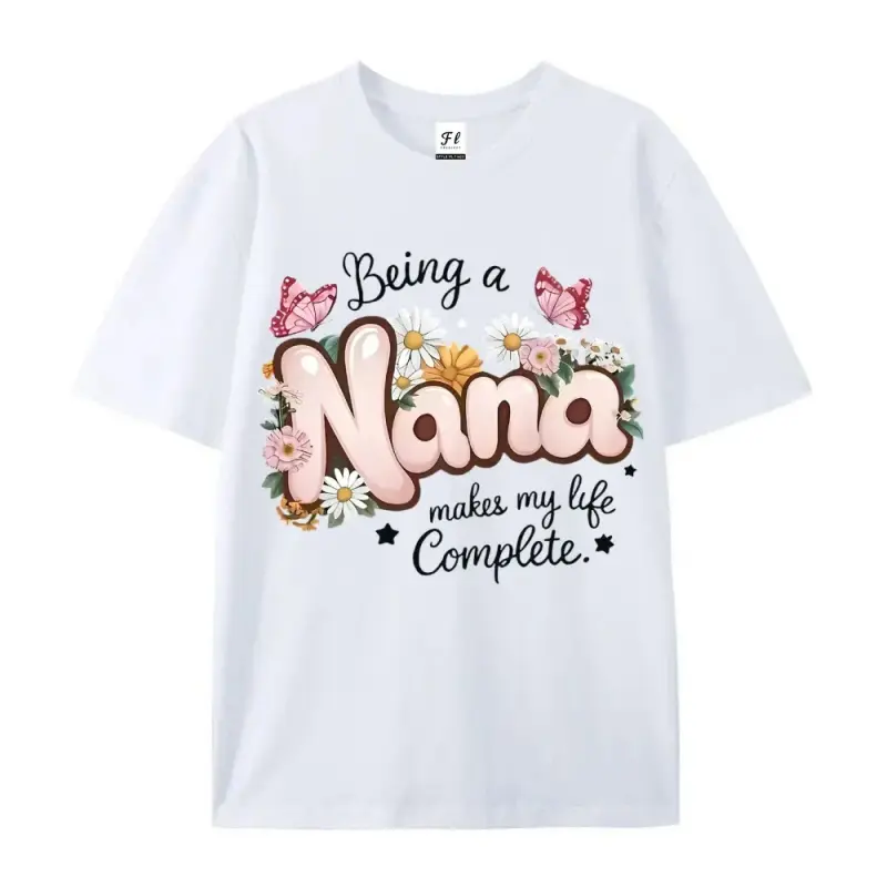 Women's "Being a Nana" Floral & Butterfly Print T-Shirt - Grandma Gift, Comfort Fit Round Neck Short Sleeve Blouse for Spring Summer Casual Wear - Top for Nana