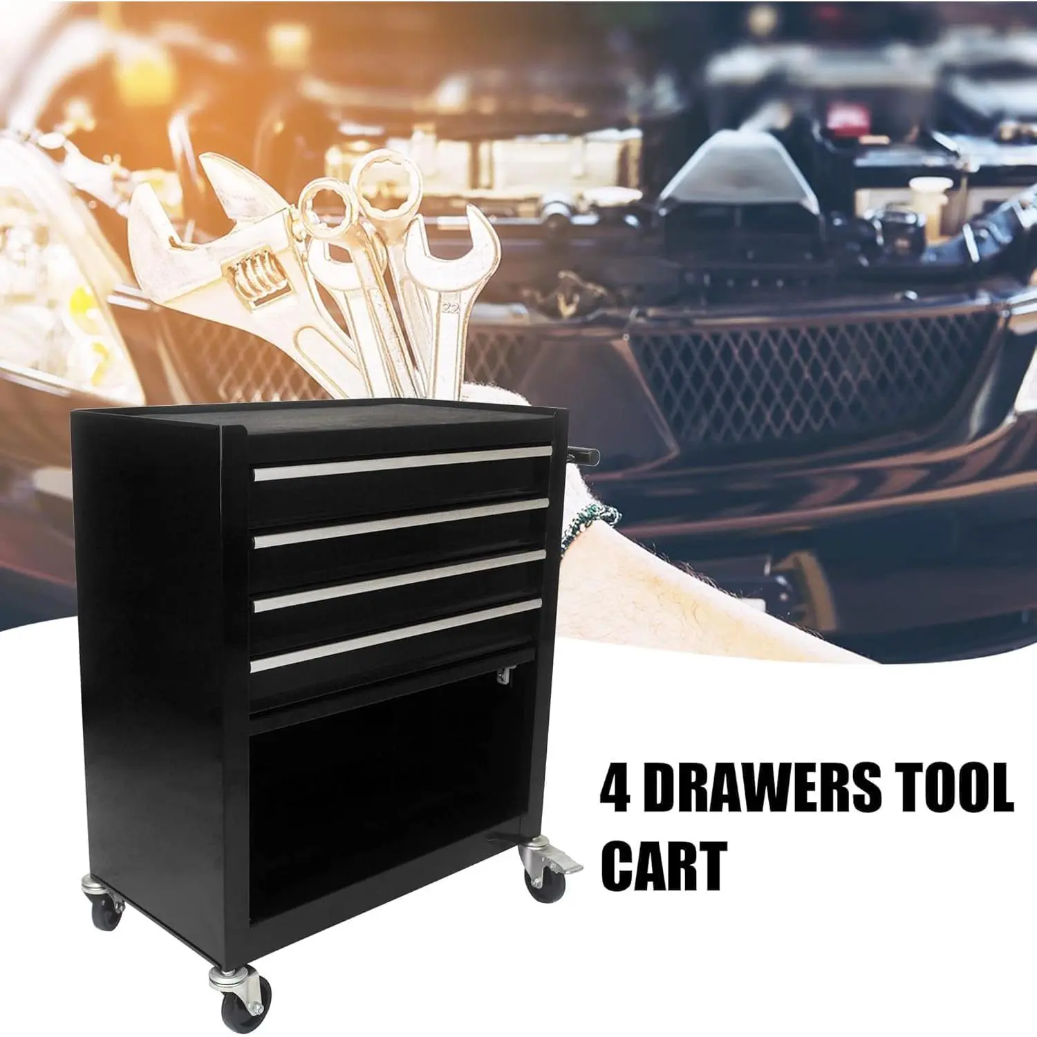 ·【Smooth Rolling Mobility】 Equipped with four 360° swivel casters and a sturdy side handle, this rolling tool chest moves effortlessly across workshop floors or tight warehouse aisles. Two locking foot brakes keep your tool box with wheels securely in place, ensuring safety and convenient access during demanding jobs.