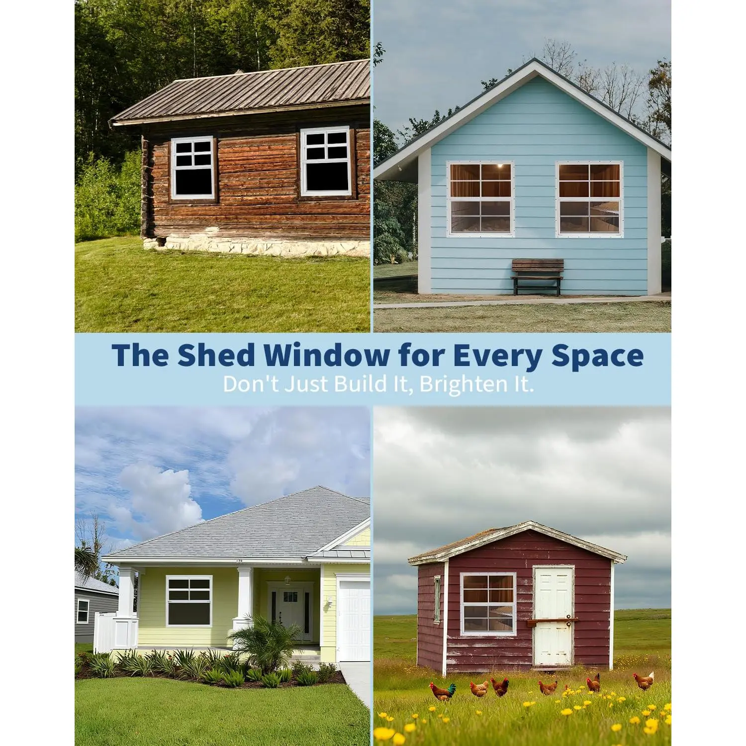 · 【Durable All-Weather Design】Crafted with a premium aluminum alloy frame and tempered glass, this shed window withstands various weather conditions, providing long-lasting performance for your outdoor structures like sheds and chicken coops.