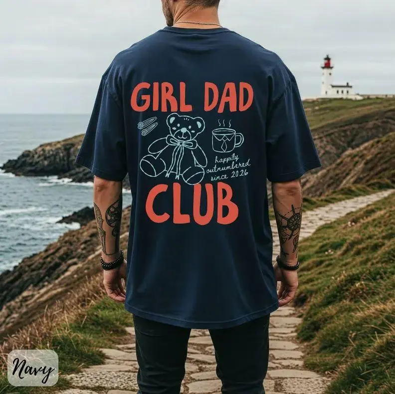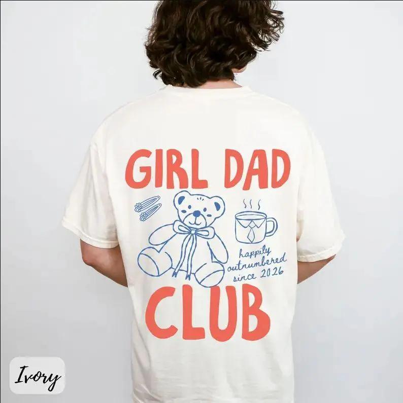 5. Girl Dad Club Comfort Style T-Shirt, Proud Girl Dad Graphic Tee, Vintage Washed Shirt, Father’s Day Gift for Dad (100% Cotton)