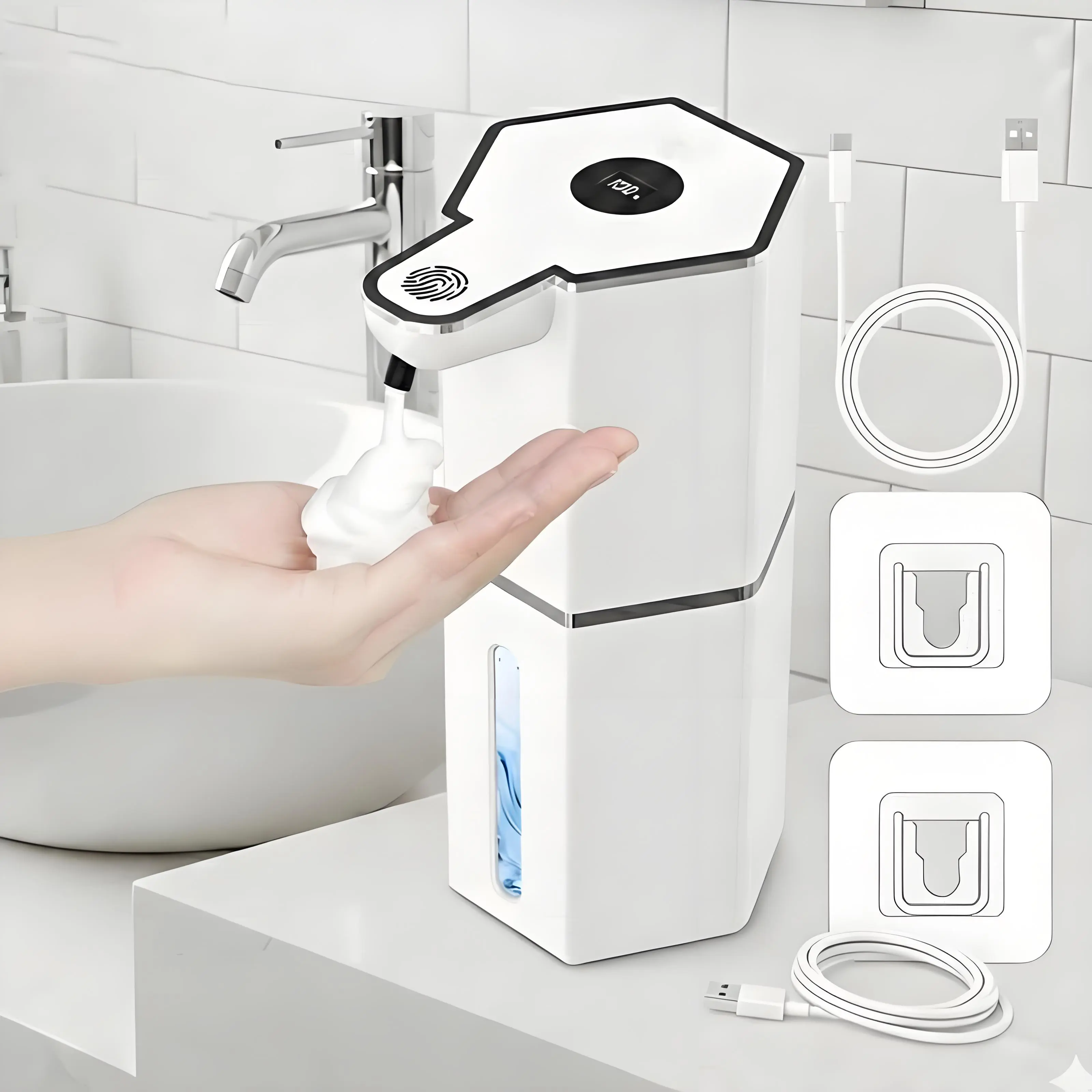 This soap dispenser is USB rechargeable, eliminating the hassle of replacing batteries while offering long-lasting performance. Its waterproof design ensures reliable operation in wet environments such as bathrooms and kitchens.