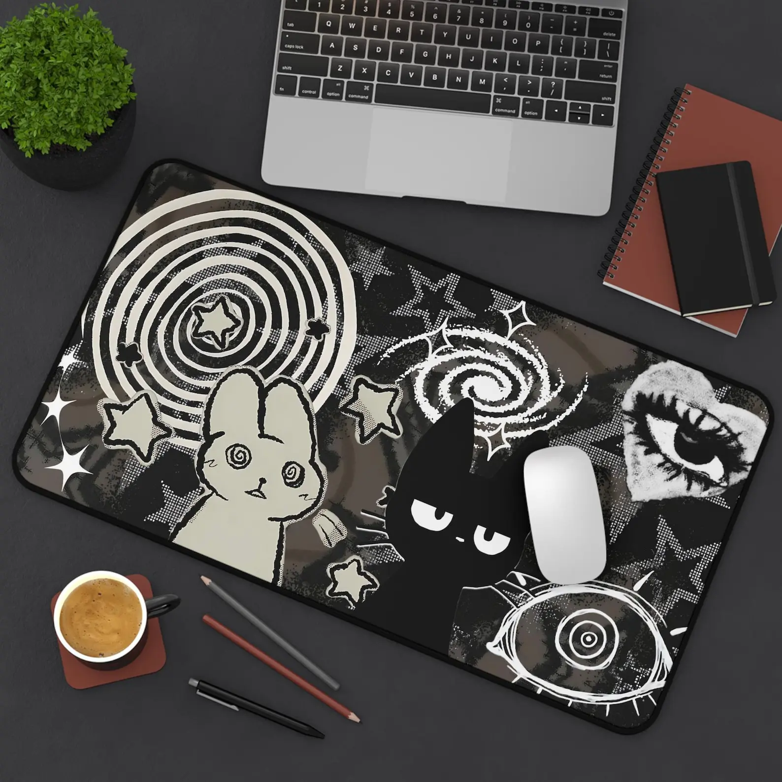 5. Dark Punk Pad Trippy Bunny & Cat Mousepad Alt Grunge Desk Mat Weirdcore Aesthetic Gaming Pad for Emo Desks Indie Alt Room Decor