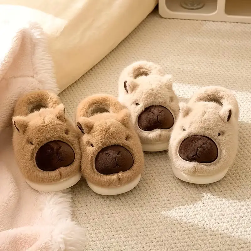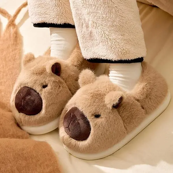 Step into instant warmth with our adorable capybara plush slippers! Made with ultra-soft, fuzzy fabric that wraps your feet in cloud-like comfort, they’re perfect for keeping toes toasty during fall, winter, and cool spring days. The thick, non-slip rubber sole provides reliable traction on tile, wood, and carpet, so you can move safely around the house without slipping.