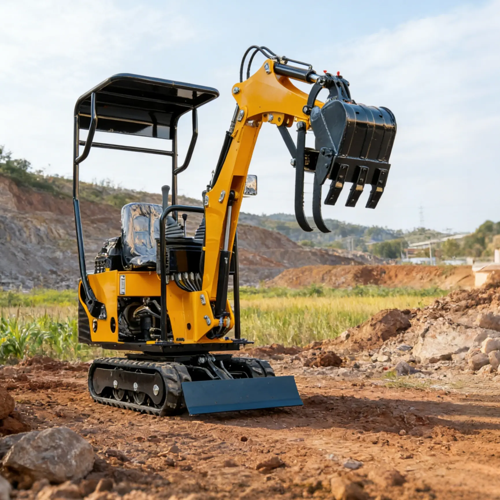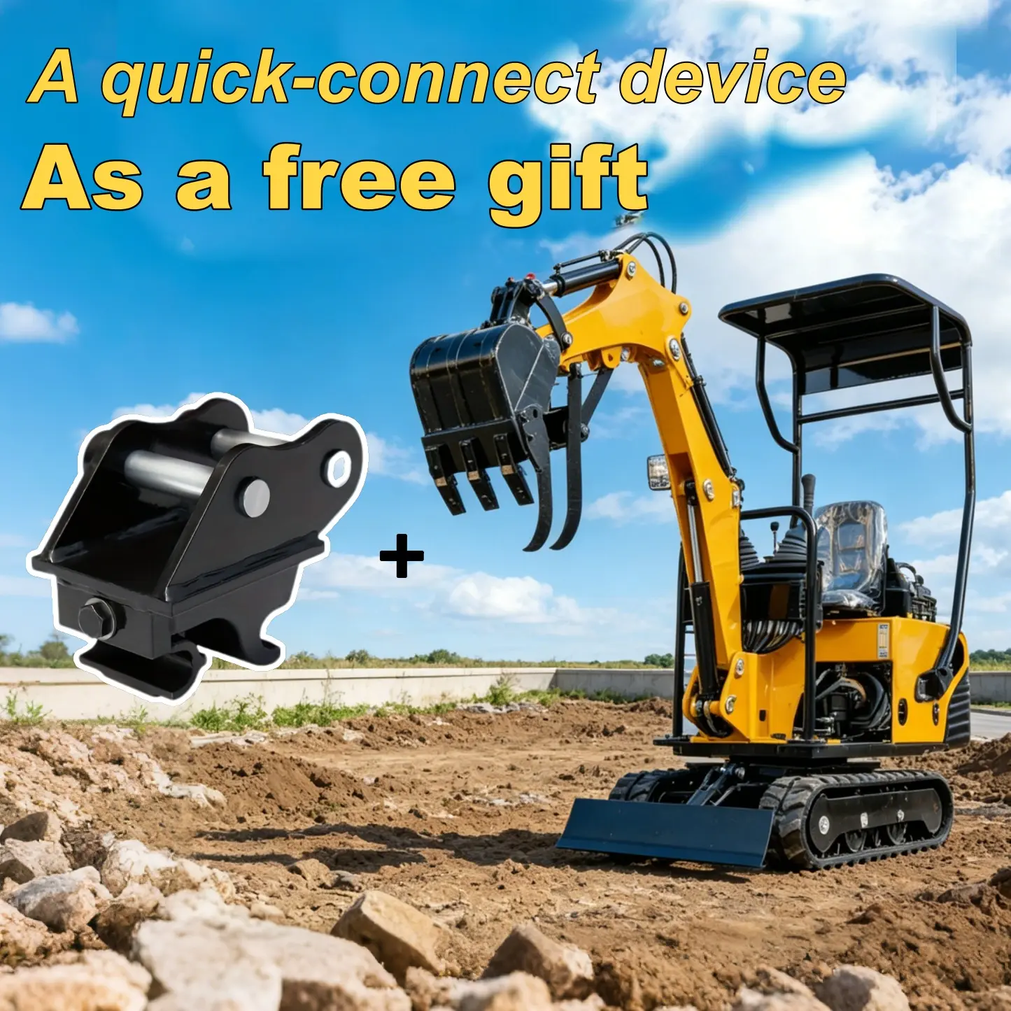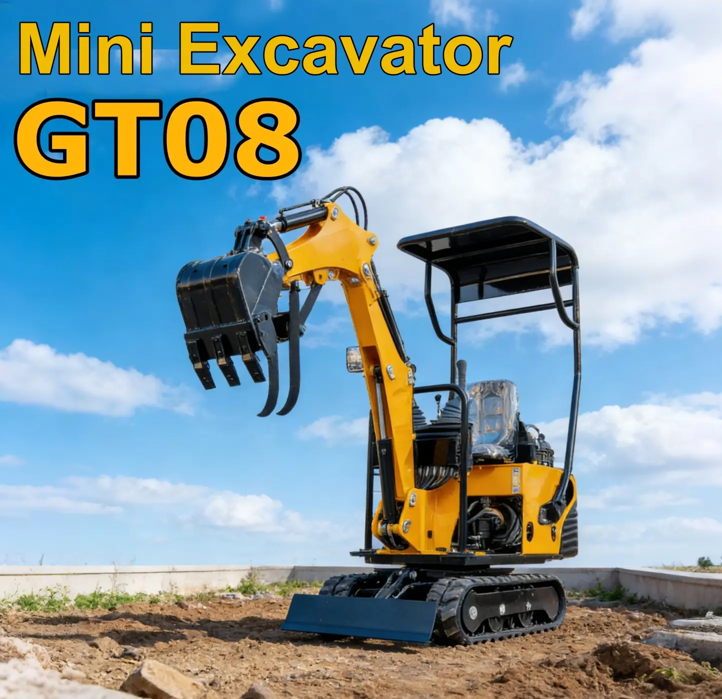 [US spot stocks]0.8 Ton Mini Excavator with 13.5HP Gasoline Engine, Bucket, Canopy, Mechanical Thumb Clamp, US Stock Compact Backhoe Digger Crawler Excavator for Trenches, Construction, Garden