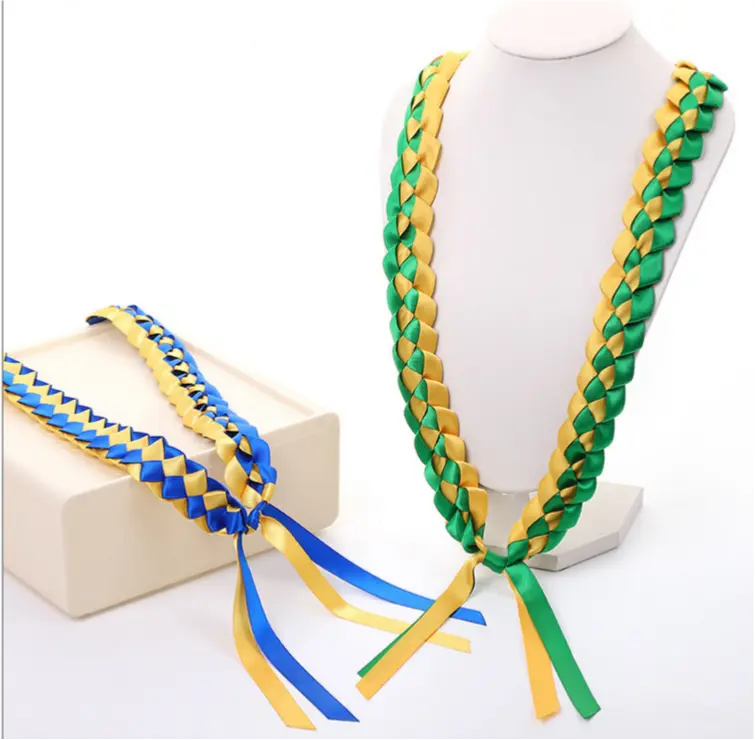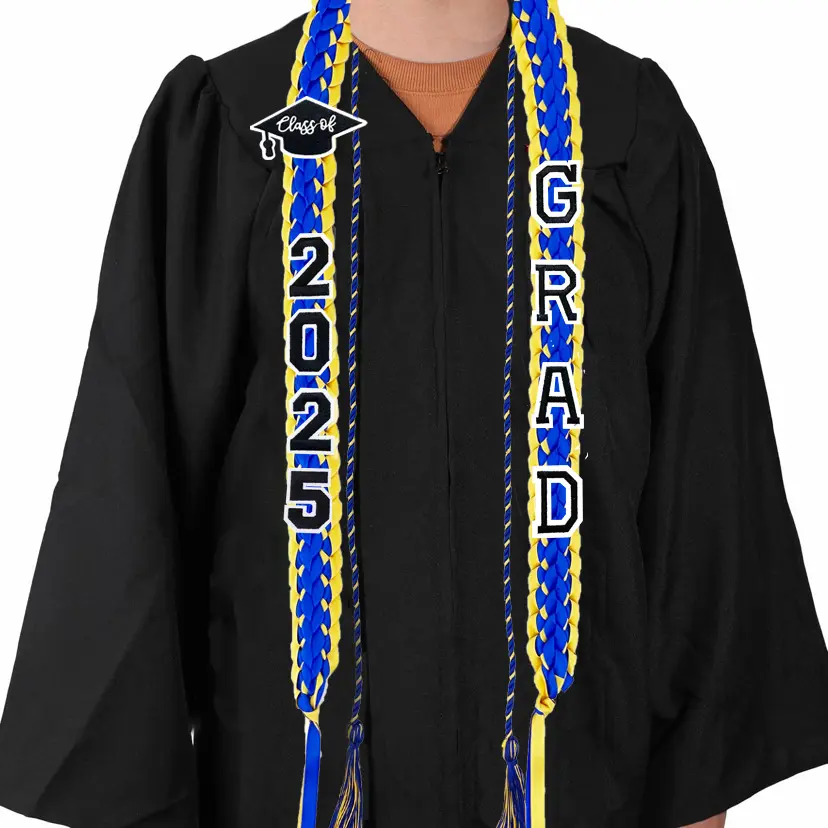 2026 Graduation Leis for Him Her - Hand-Woven Blue Braided Ribbon Lei with GRAD Letters & Cap Charm, Adjustable Graduation Money Lei with Safety Pins for Class of 2026 Graduation Ceremony Party Favors