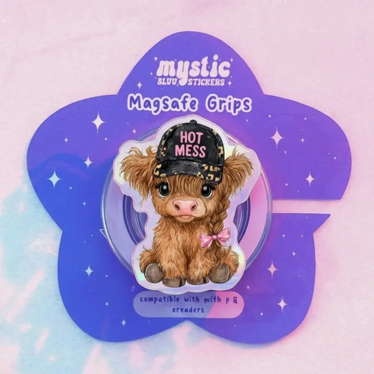 Funny Hot Mess Highland Cow Magsafe Phone Grip Detachable Magnetic Kickstand, Cute Farm Aesthetic Gift For Cow Lovers Daily Use