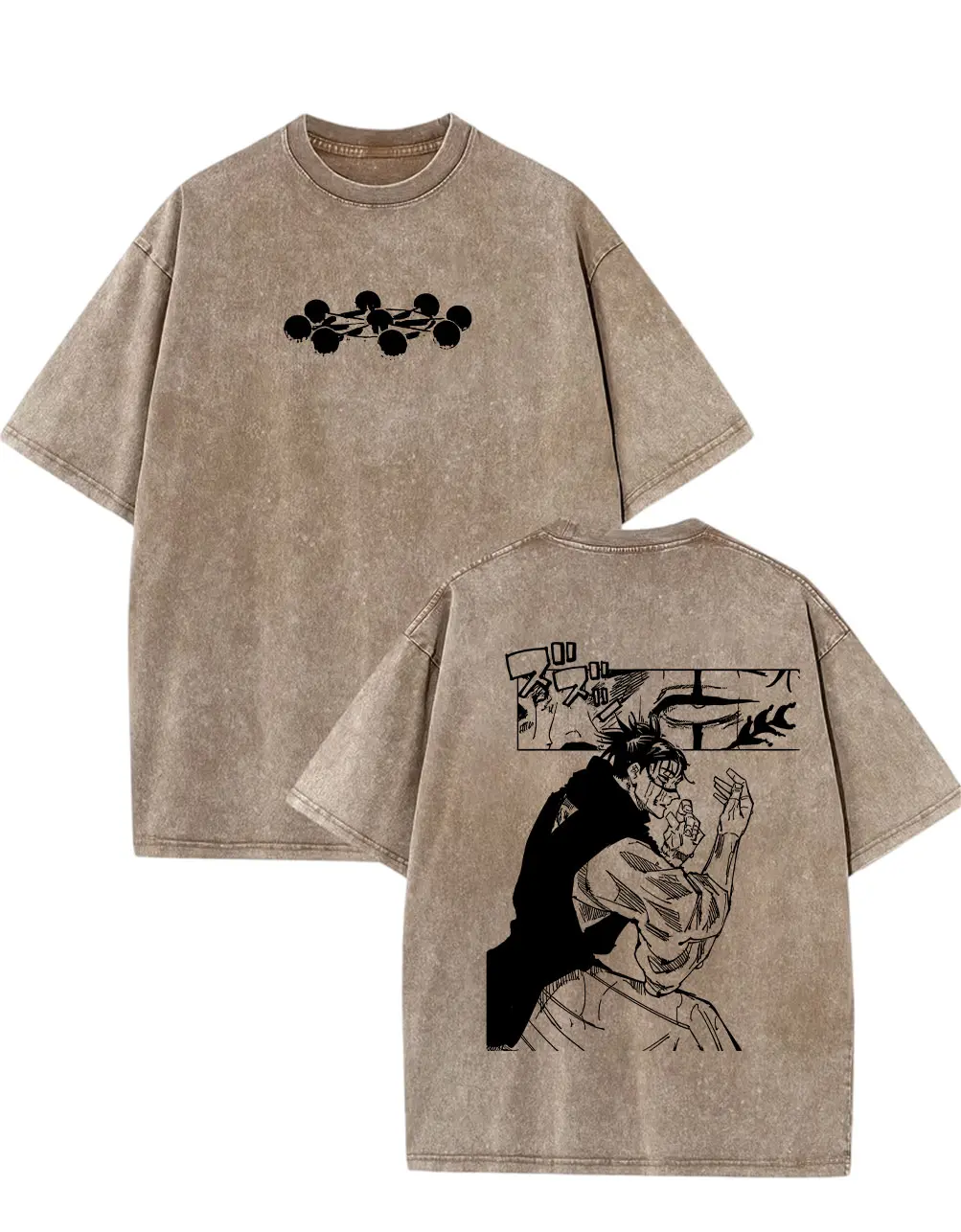 Classic oversized/boxy fit that flatters all body types, offering a comfortable, laid-back silhouette. The washed beige base makes the stark black character art and white text pop, creating a striking, high-contrast streetwear aesthetic. Easy to pair with jeans, cargo pants, or sneakers for a versatile, anime-ready outfit. Unisex design works for men, women, and teens!