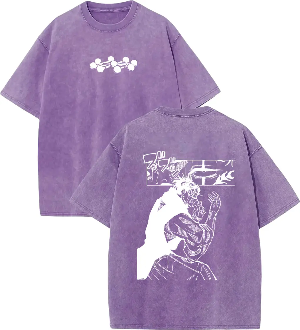 Crafted from high-quality heavyweight cotton with a vintage acid wash finish (distressed beige/cream). Breathable, lightweight, and pre-washed for a soft, lived-in feel, ensuring all-day comfort for anime conventions, streetwear meetups, or casual outings. The crisp, detailed manga print is durable, resisting fading and cracking to maintain its authentic, retro look wash after wash.