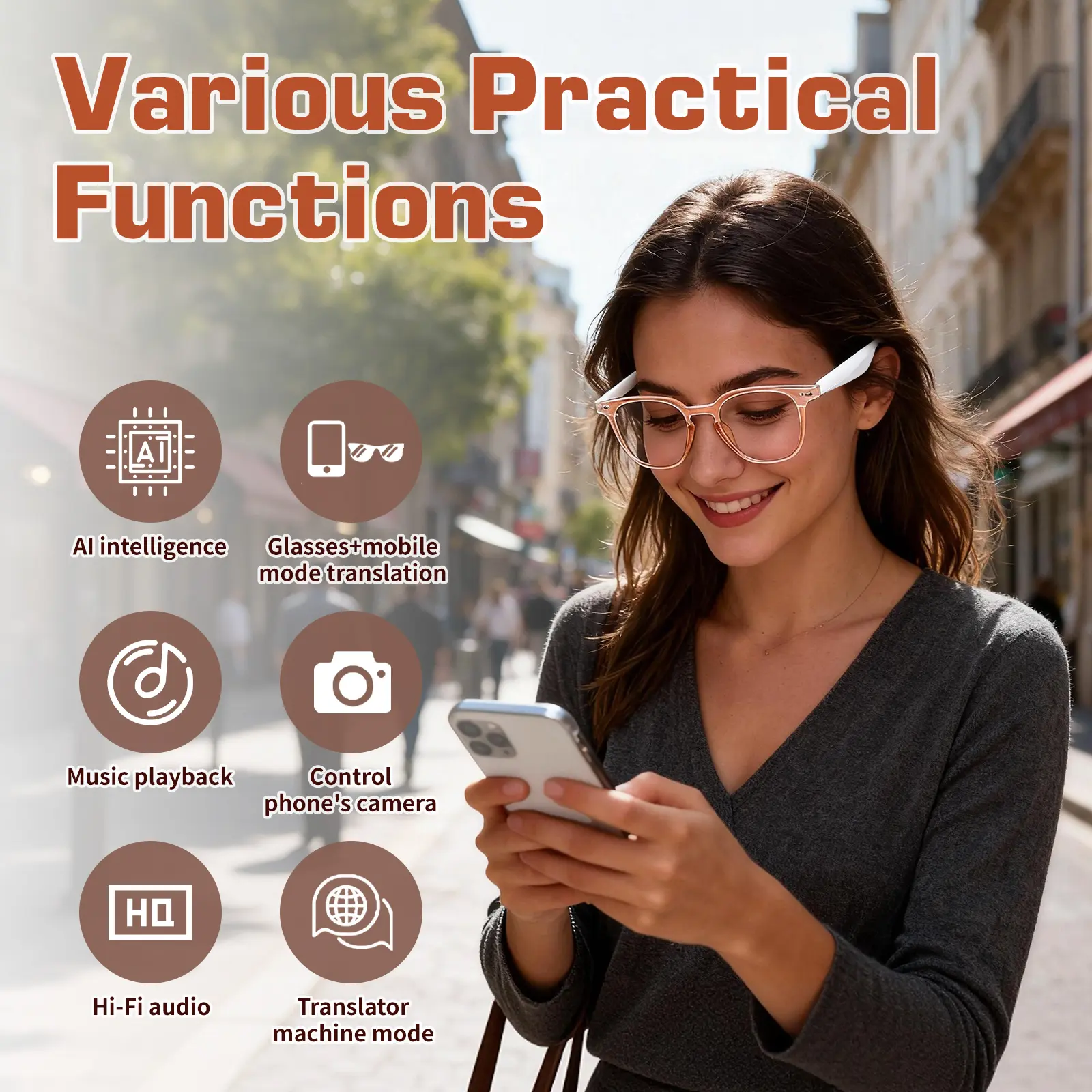 ·Intuitive Touch Control: Easily adjust volume, skip tracks, or answer calls with a simple touch on the frame of the smart glasses. With integrated voice assistant compatibility, the AI smart glasses allow effortless access to your phone’s functions, making multitasking smoother and more efficient during daily routines.
