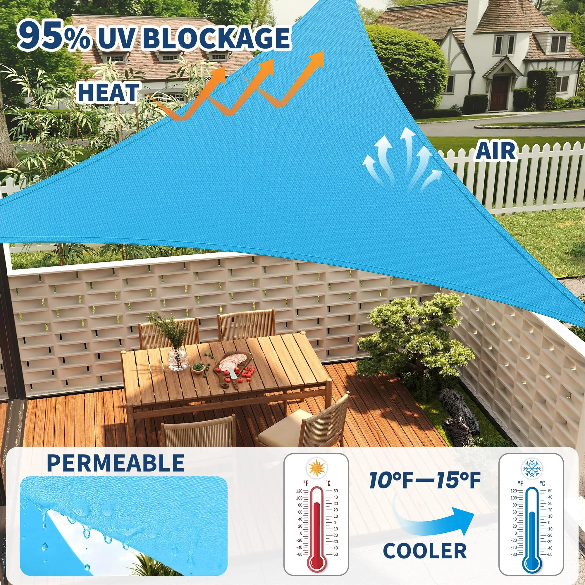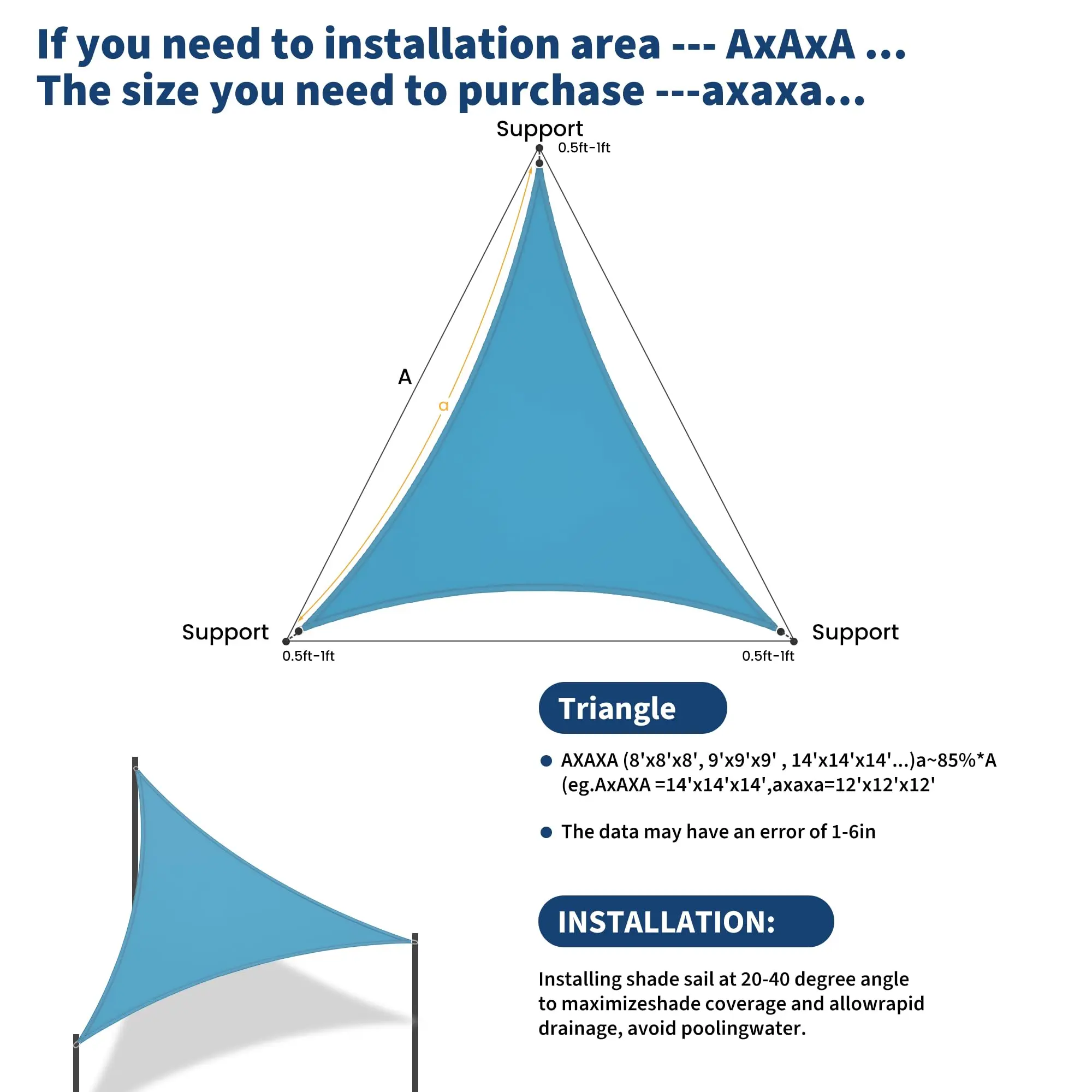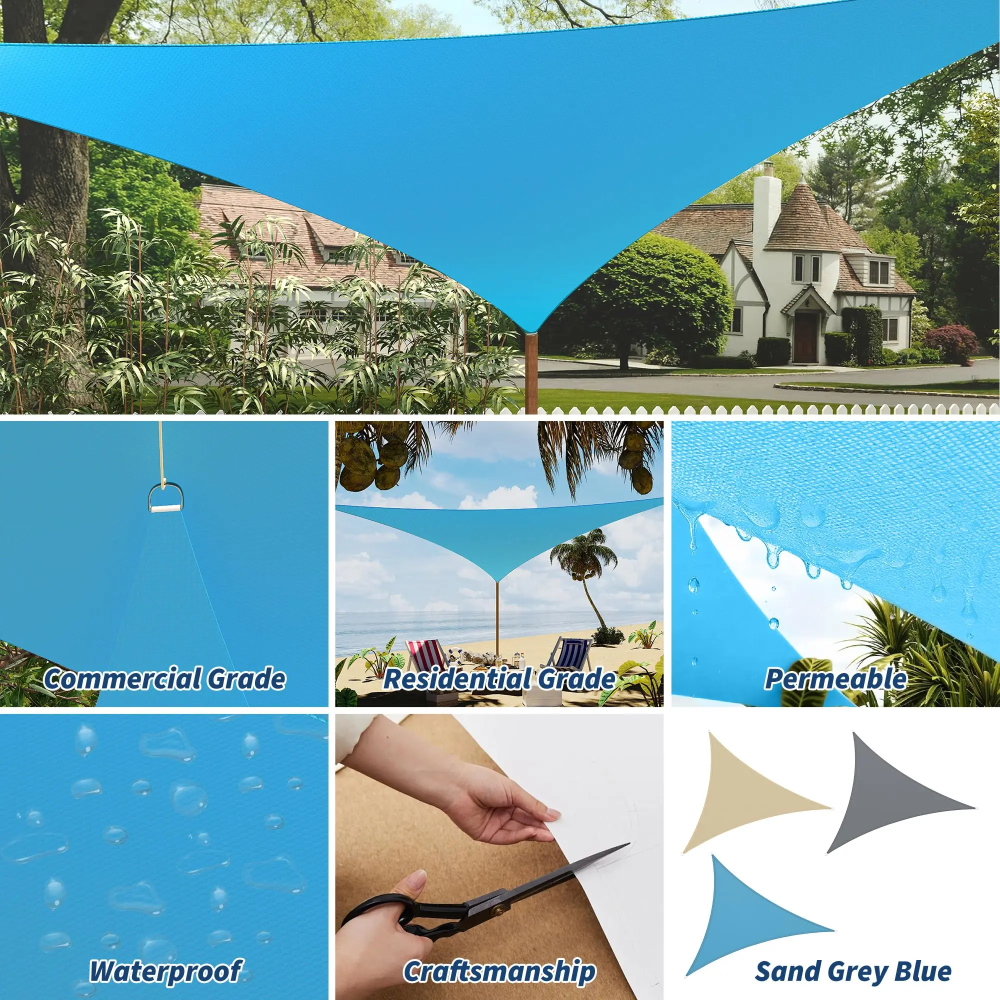 · 【Easy-to-Install Shade Sail & Canopy】The 16'X16'X16' Triangle shade sail is designed for simple installation as a stable shade canopy or sun shade sail. Use it like awnings for patio or a stylish sail shade in minutes.