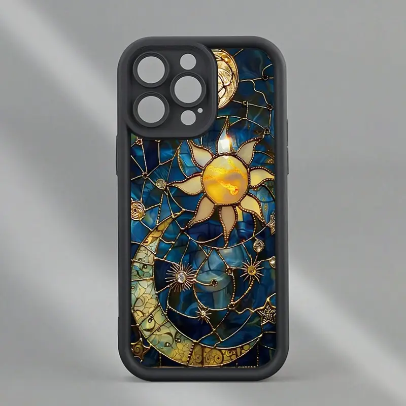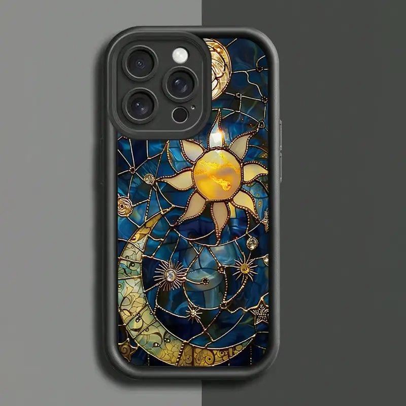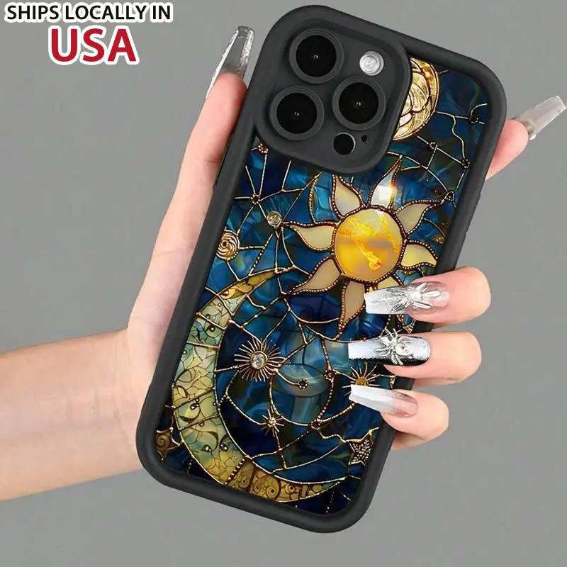 Vintage Phone Case Moon and Sun Pattern Case for IPhone 16 15 14 Pro Max 13 12 11 XR XS Plus Shockproof Non Slip Military-Grade Protection Silicone Cover