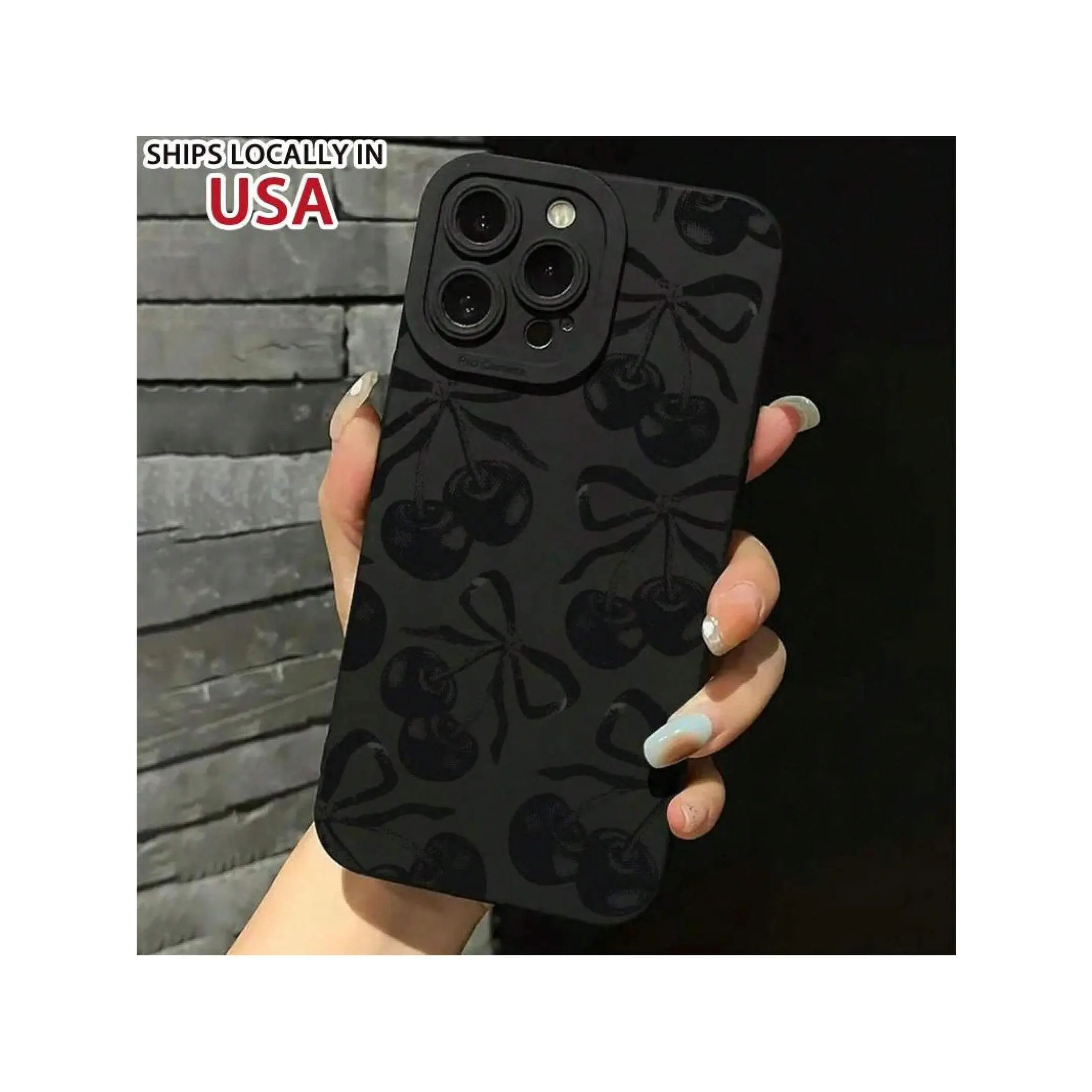 Cherry Pattern Phone Case, Full Coverage Lens Phone Protective Cover, Shockproof Phone Cases Compatible With IPhone 11 12 13 14 15 16 Pro Max/Pro/Plus