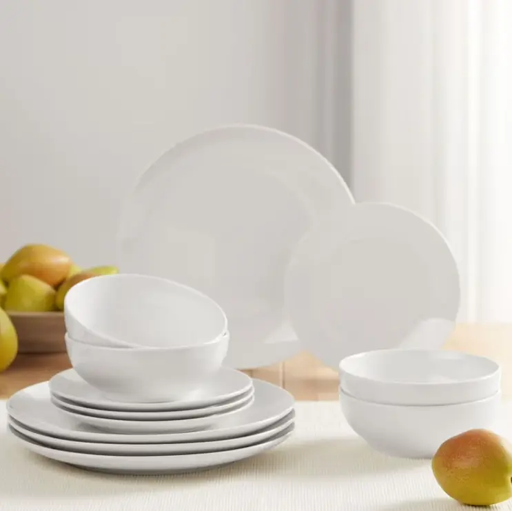 Bring simple elegance to your dining table with this modern 12-piece dinnerware set. Designed with a clean white glazed finish and porcelain-like appearance, it adds a timeless and versatile look to any meal setting.