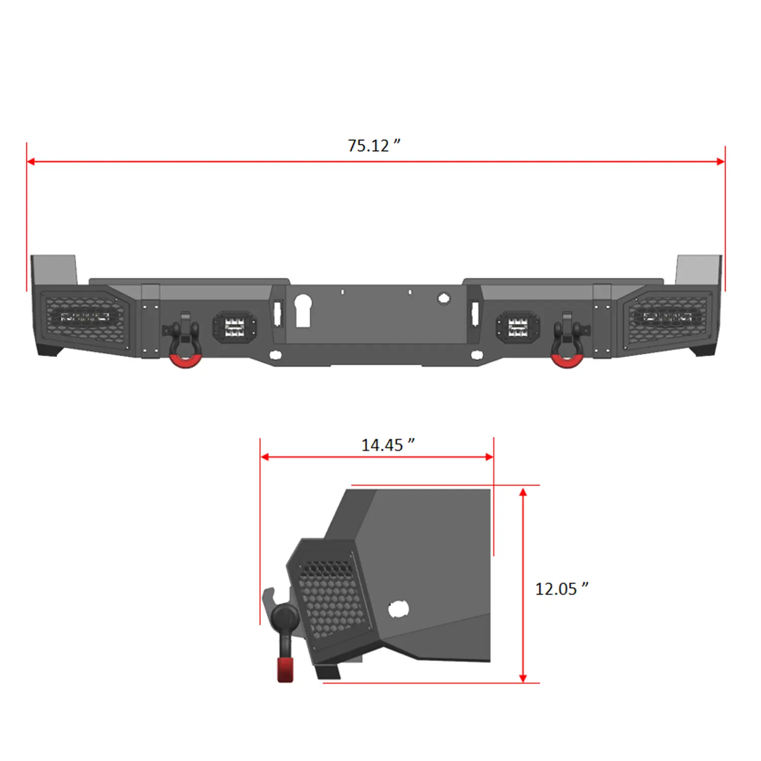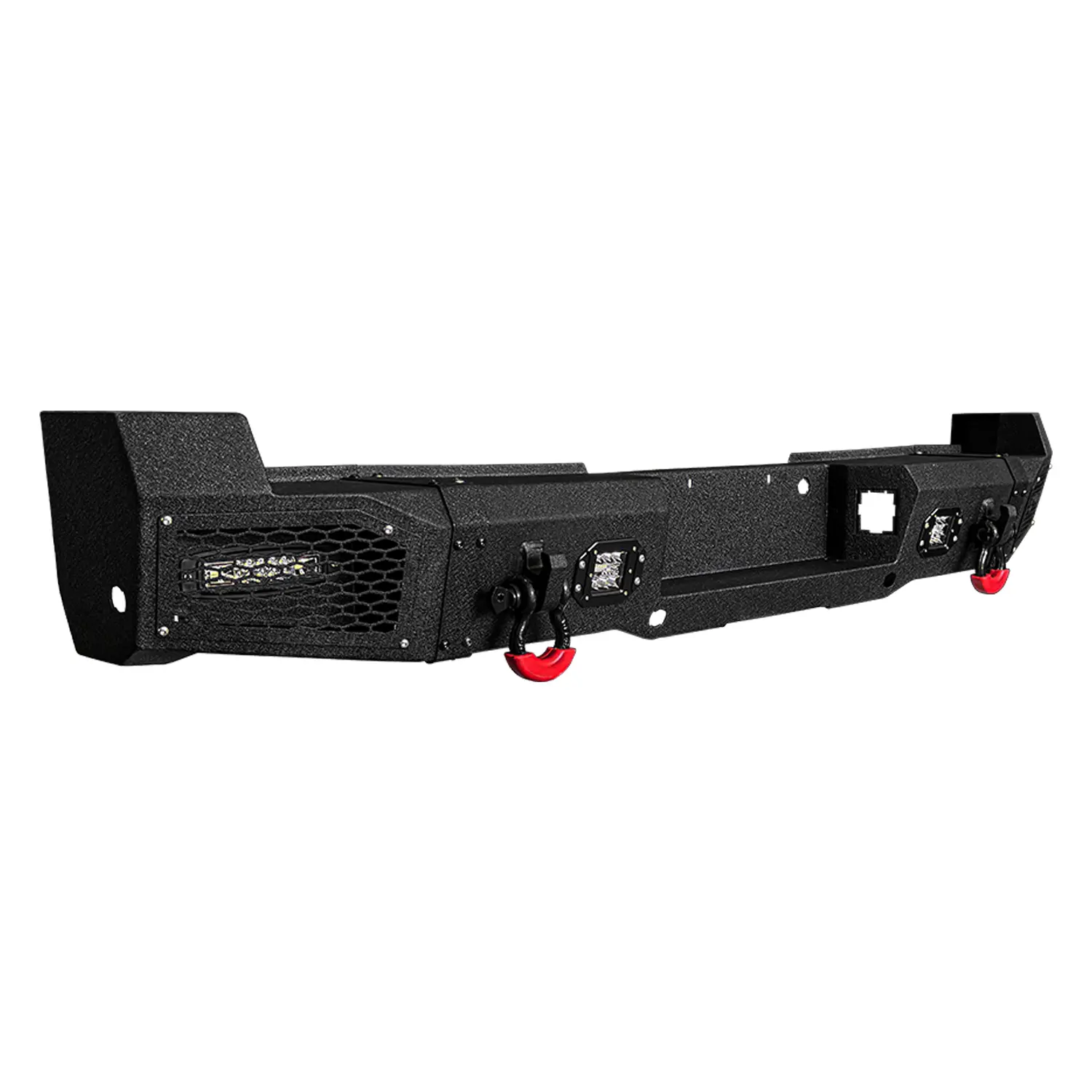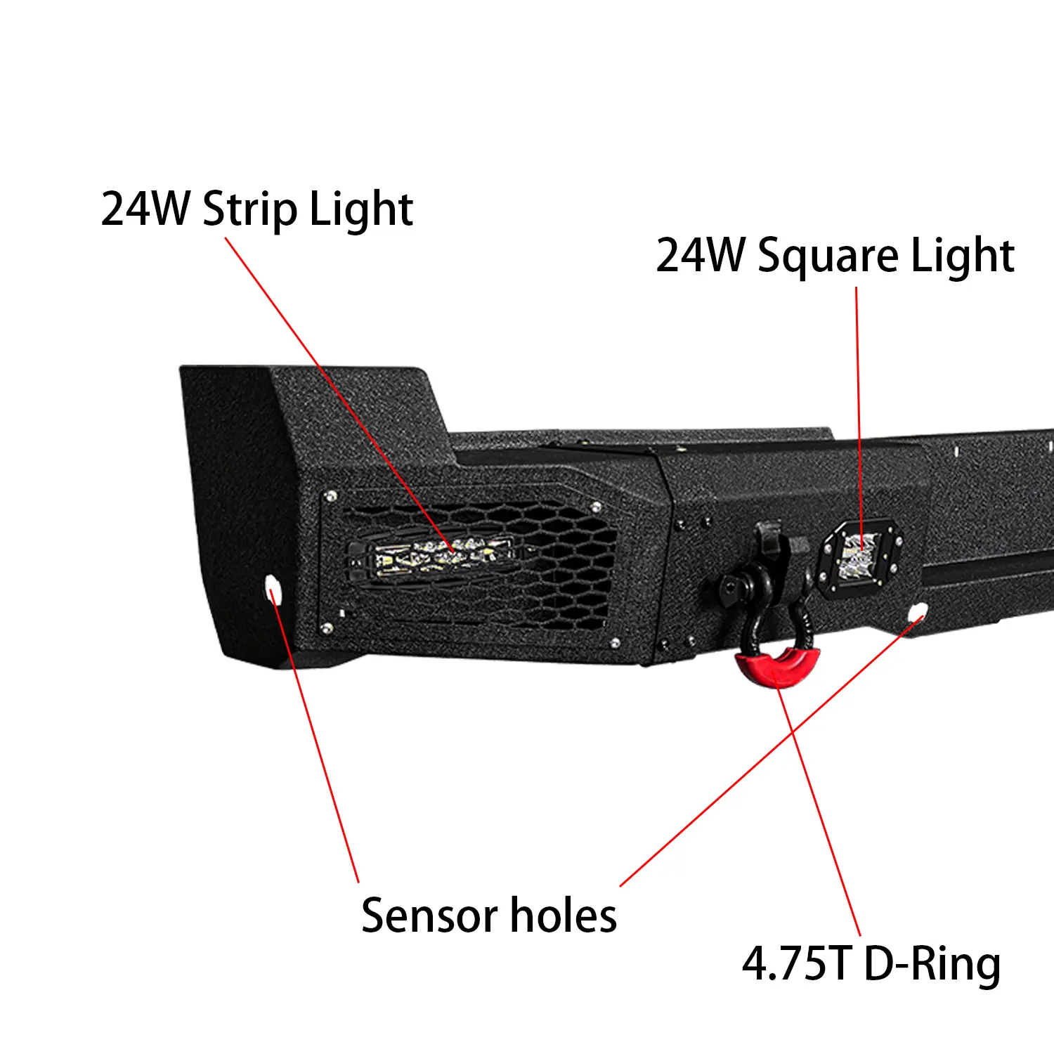 This bumper is built for off-road performance. The D-rings provide secure attachment points. The LED lights improve safety and visibility. Upgrade your Ford's rear end with this durable, stylish bumper. Perfect for your next off-road trip.