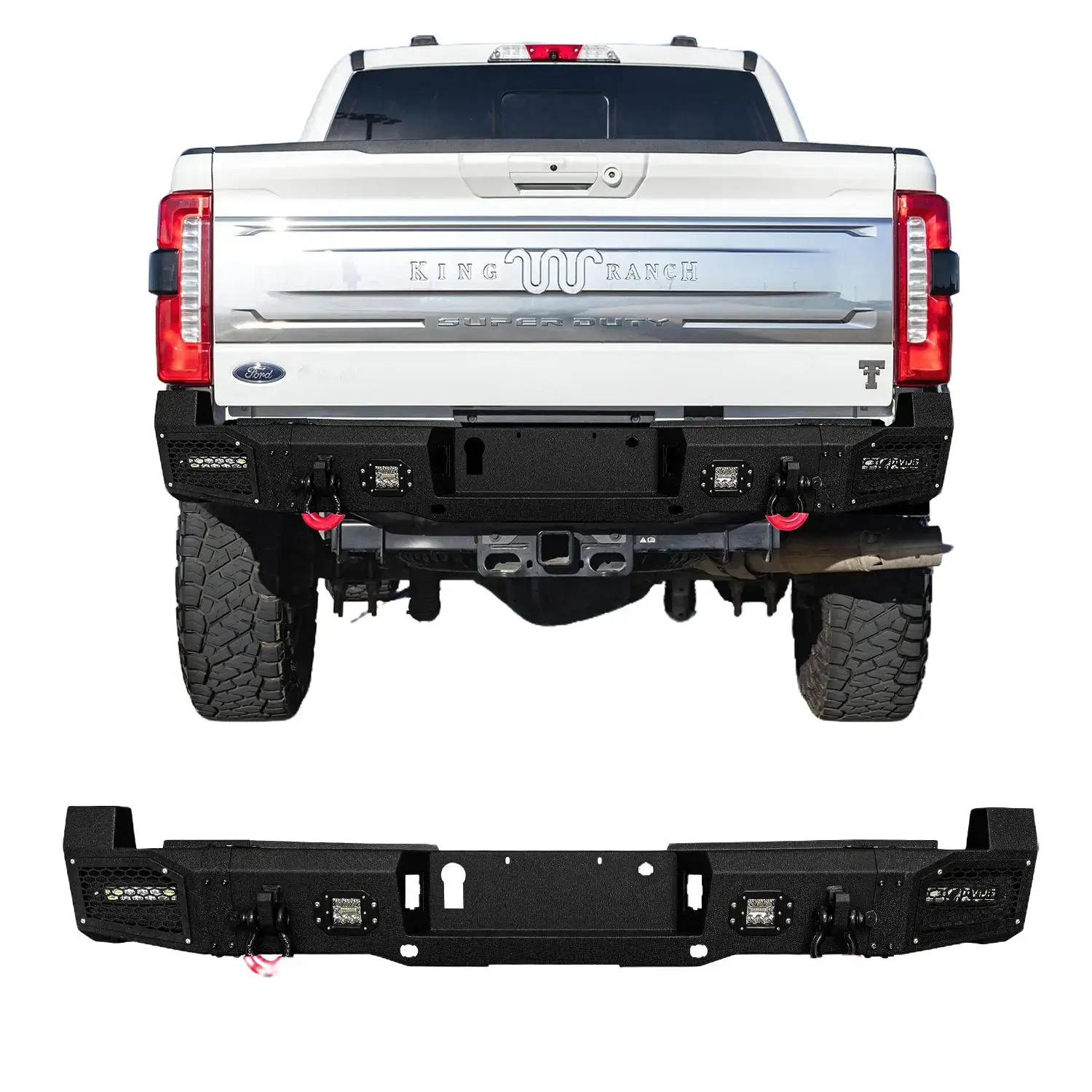 TIOYAR Steel Rear Bumper Black Texture for 2023-2025 Ford F-250 Super Duty F-350 Super Duty with LED Lights 2 x D-Rings Off-Road Performance