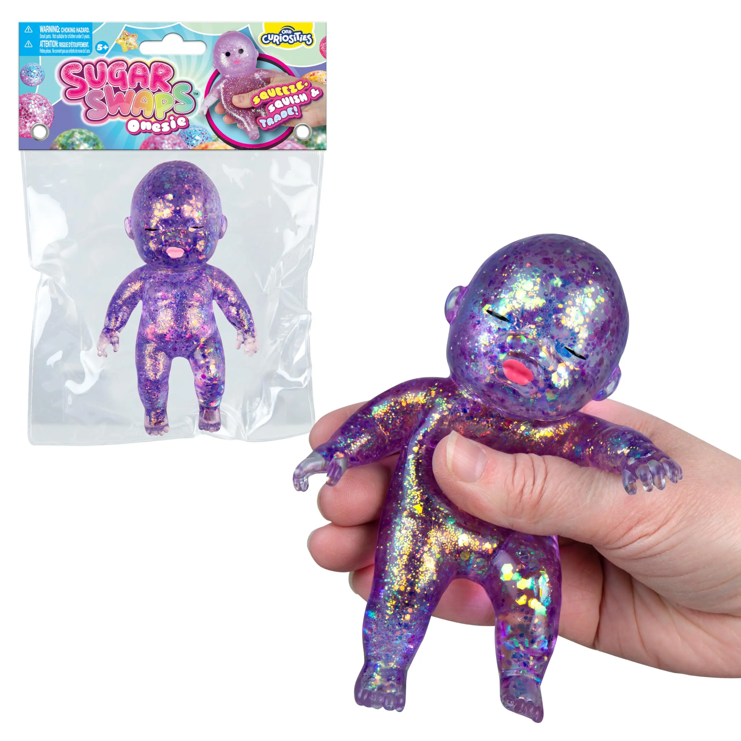 Large Sparkly Sugar Swaps Jumbo Baby Squishie, Stretchy Squeezable Collectible Fidget Toy, Stress Relief Sensory Toy for Kids & Adults