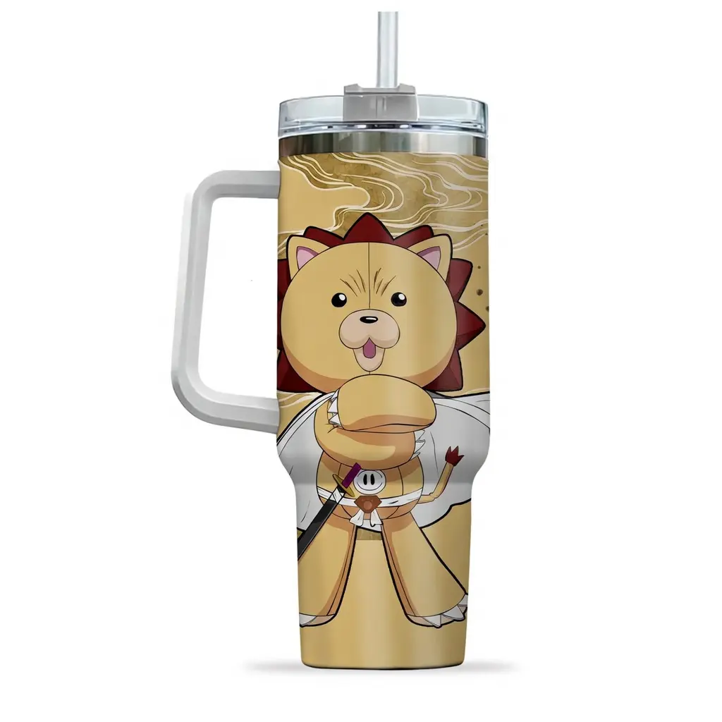 5. Kon Bleach Anime 40oz Tumbler with Handle and Straw, Stainless Steel Vacuum Insulated Cup, Cute Lion Plush Design, Anime Merch