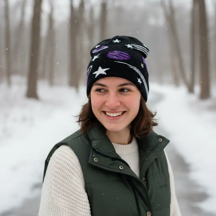 Space Beanie - Handmade Cosmic Design with Glow-in-the-Dark Stars for Comfort and Warmth - One-Size-Fits-Most - Perfect for Stargazers and Space Enthusiasts