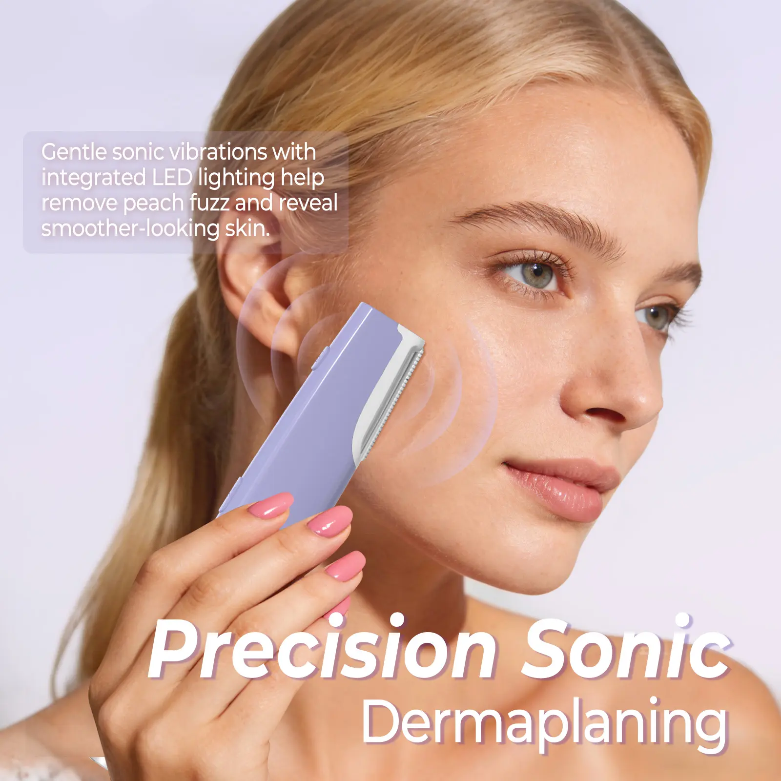 Purple Sonic Dermaplaning Tool for Women, 3-Speed Facial Hair Remover with LED Light, Rechargeable Face Shaver for Peach Fuzz Removal & Gentle Exfoliation, Portable Skincare Tool with Replaceable Blades