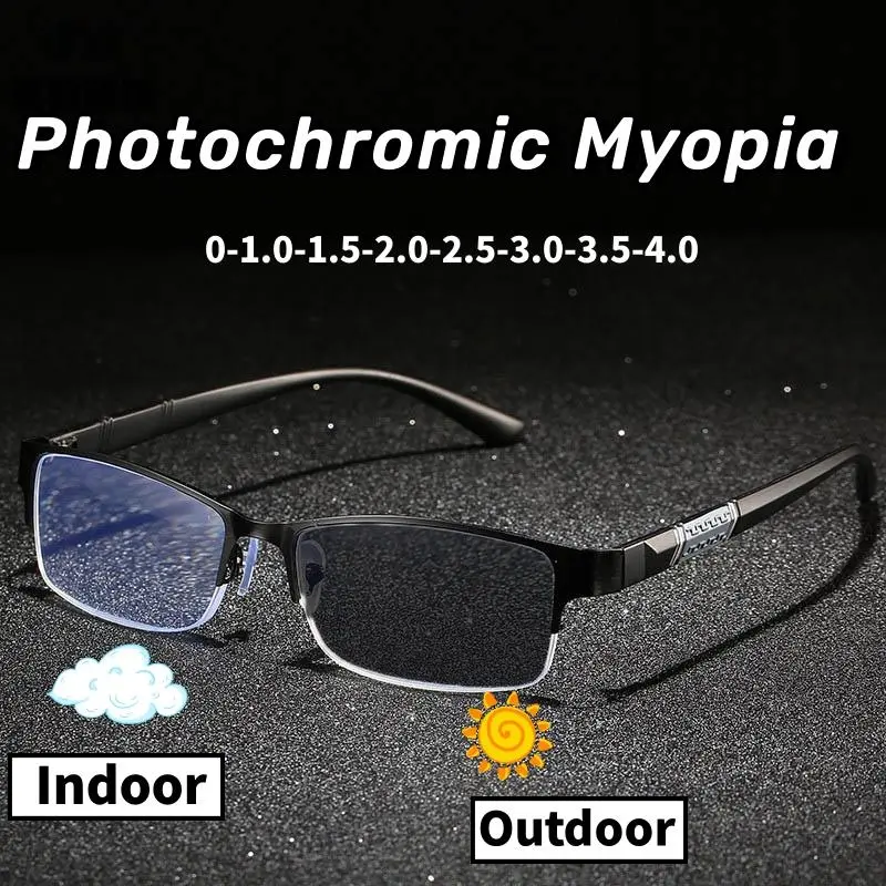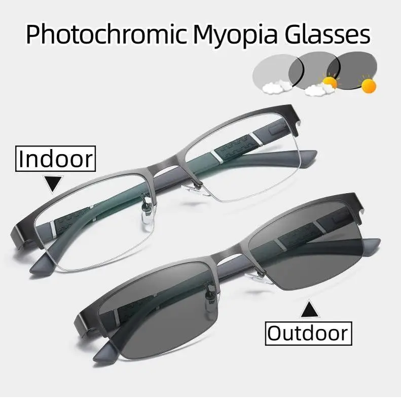 Popular Color Changing Photochromic Glasses for Men Women Business Near Sighted Eyeglasses Unisex Vintage Half Frame Myopia