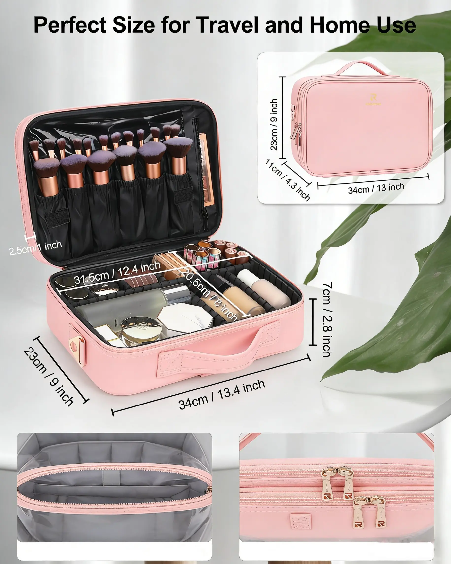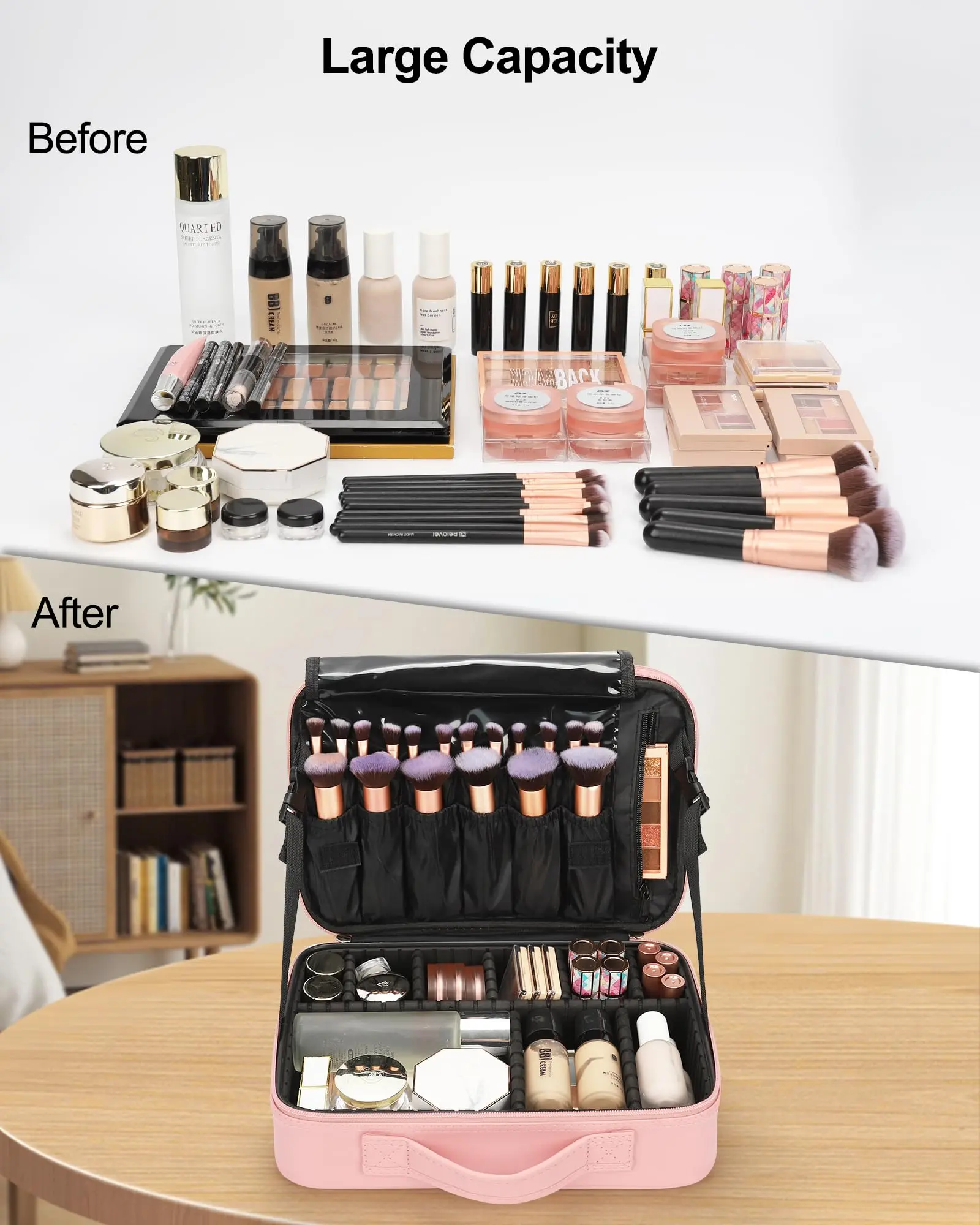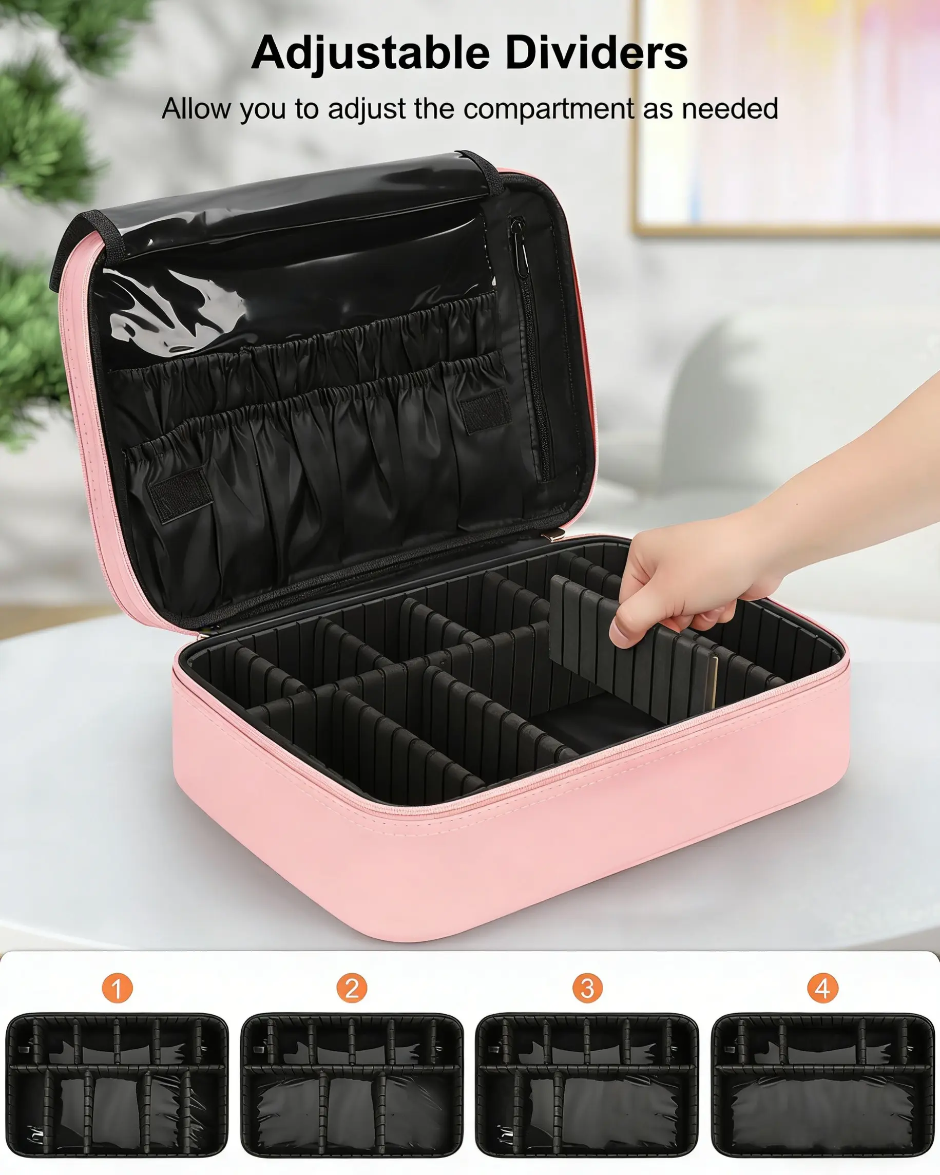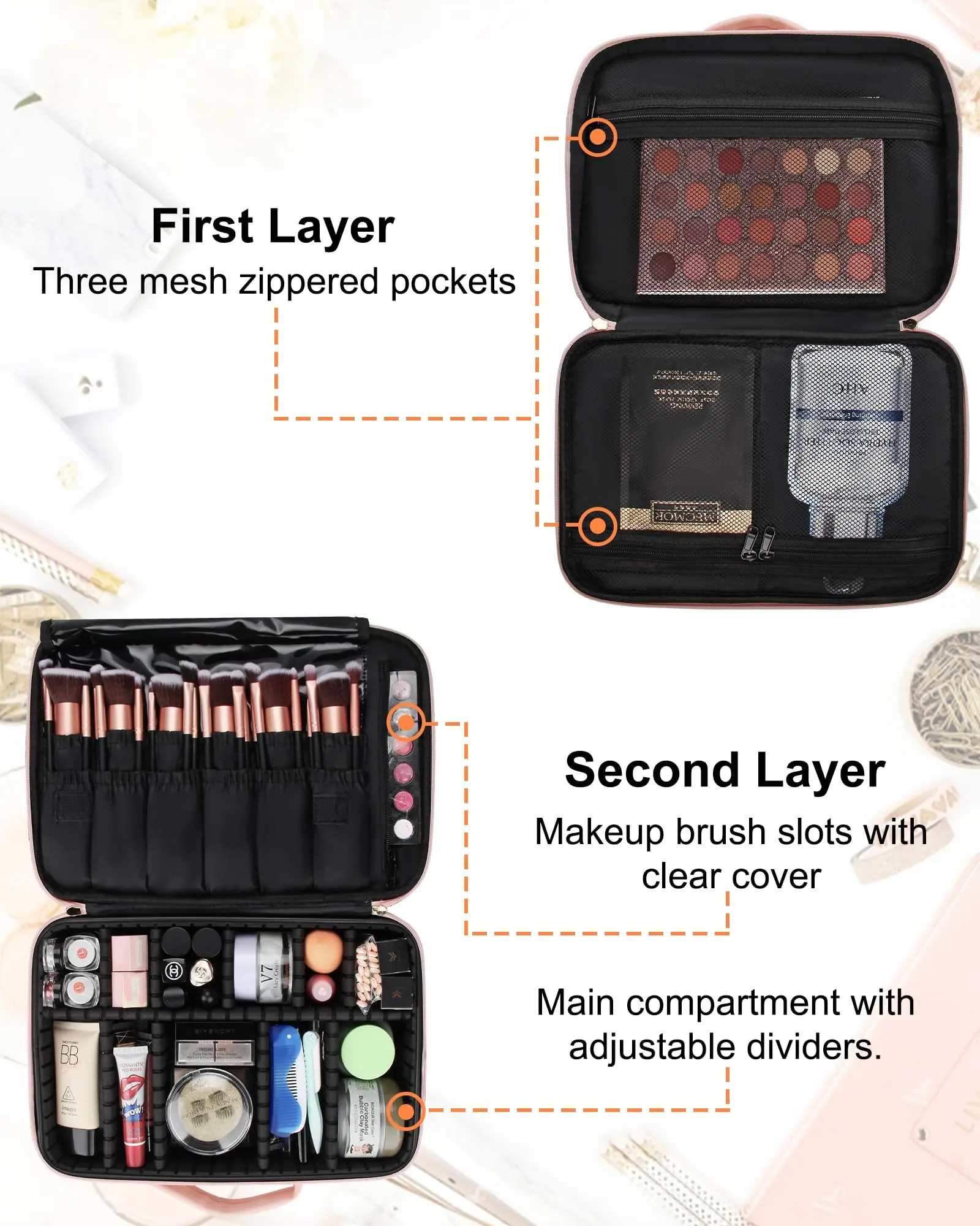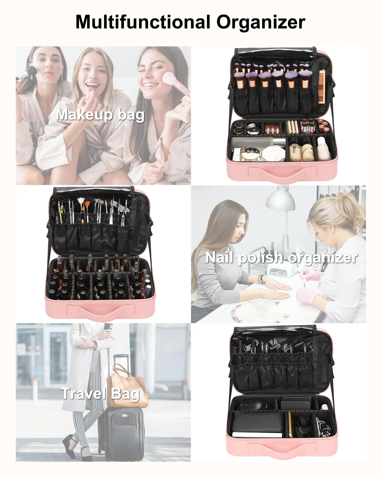 Travel Makeup Bag Cosmetic Bag Adjustable Dividers, Professional Cosmetic Artist Organizer,Makeup Organizer Bag Waterproof,Perfect Mother Gift For Friend& Family.