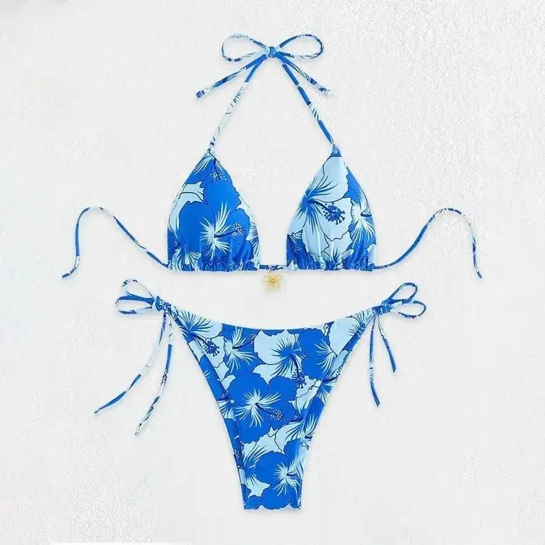 Classic Silhouette: A timeless triangle halter neck paired with high-cut, tie-side bottoms designed to flatter your natural curves.