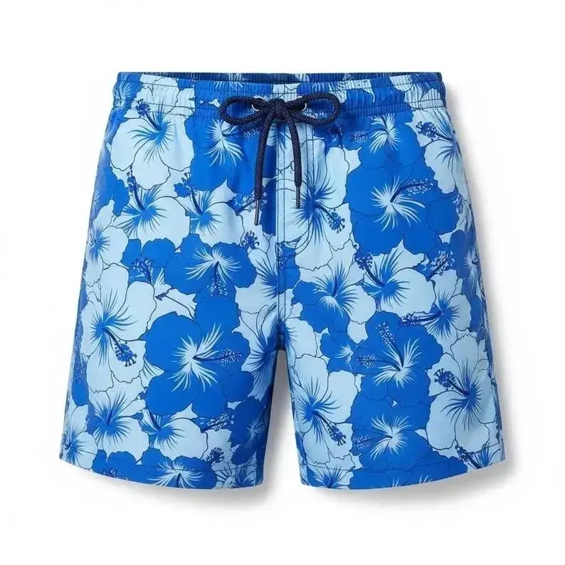 Blue Floral Matching Swimwear Set – Triangle Bikini for Women & Hawaiian Men’s Swim Shorts – Perfect Couple Beach Outfit for Summer Vacation & Holiday Gift Idea