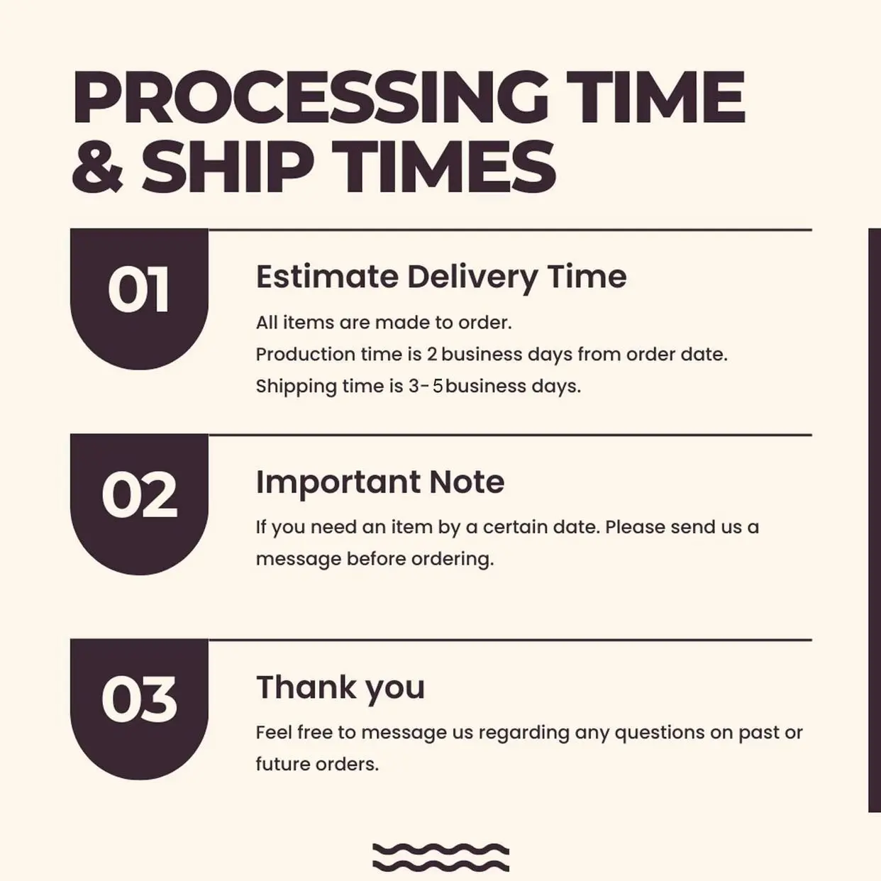 ·Peak times may cause delays; check our Shop Announcement for updates.