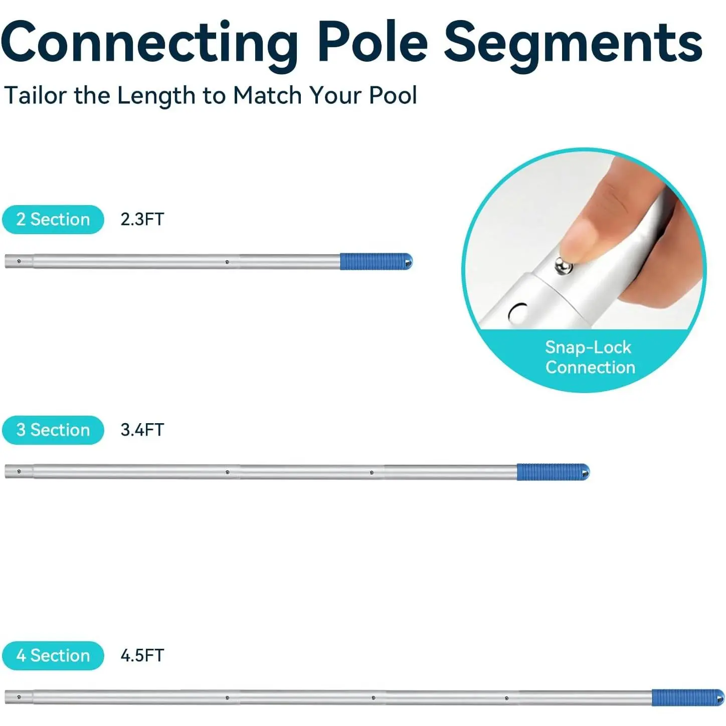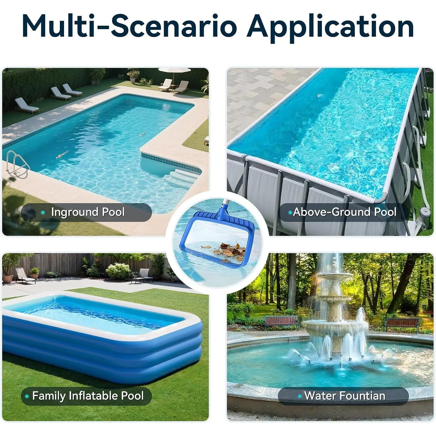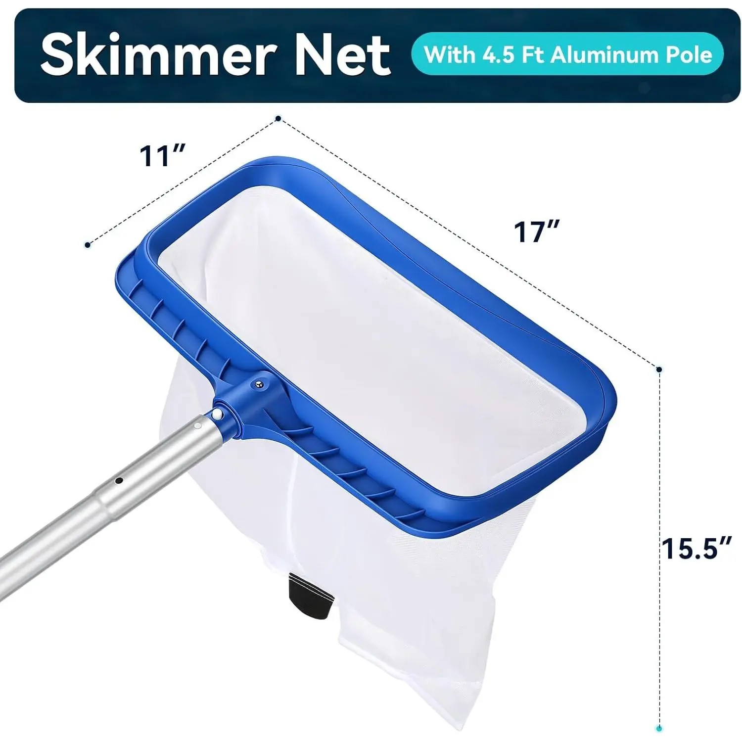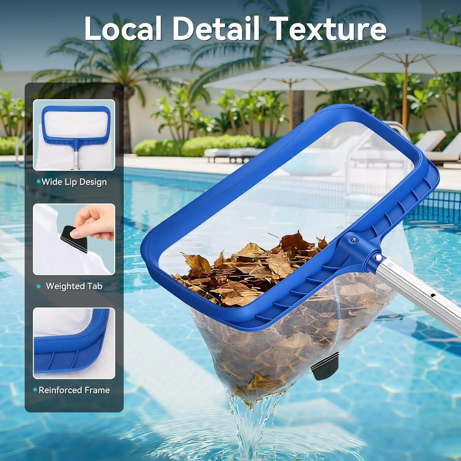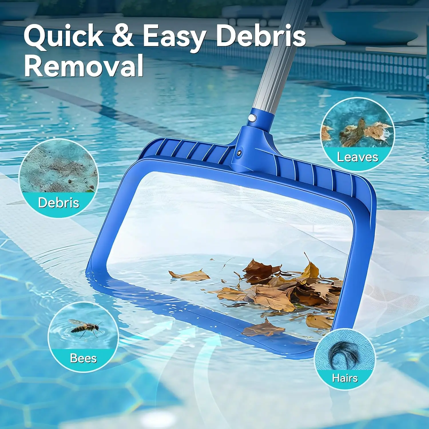 4.5FT Telescoping Pool Skimmer Net - 4-Section Aluminum Pole with Deep Mesh Basket for Leaves & Debris. Quick Assembly for Small Pools, Ponds, or Fountains