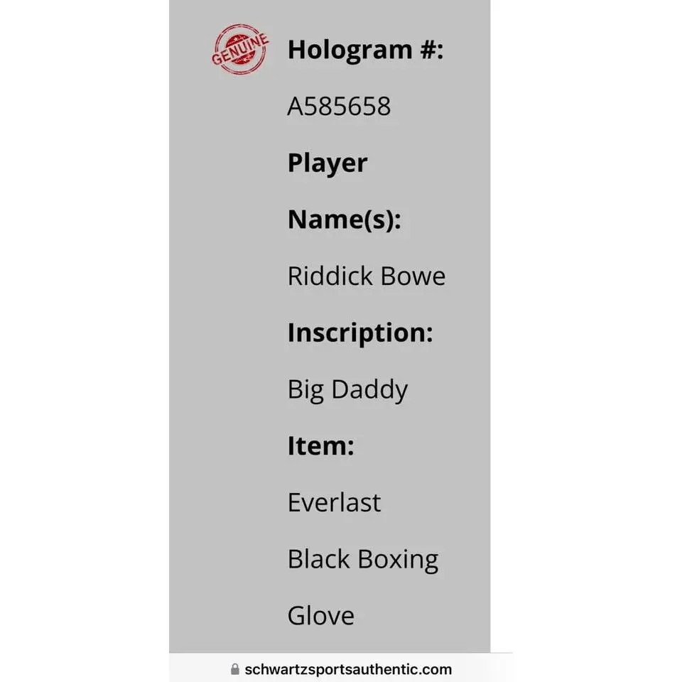 Riddick Bowe Signed Everlast Glove – “Big Daddy” Inscription