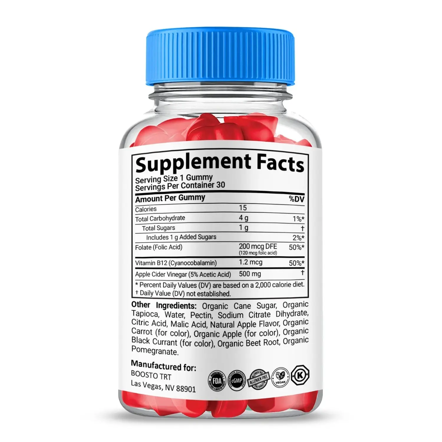 Boost TRT brings the goods in a simple gummy built just for guys. Inside every delicious bite, you’ll find Apple Cider Vinegar plus Vitamin B12 and Folic Acid, all in a formula made for everyday performance. 1 Gummy per day is all you need!