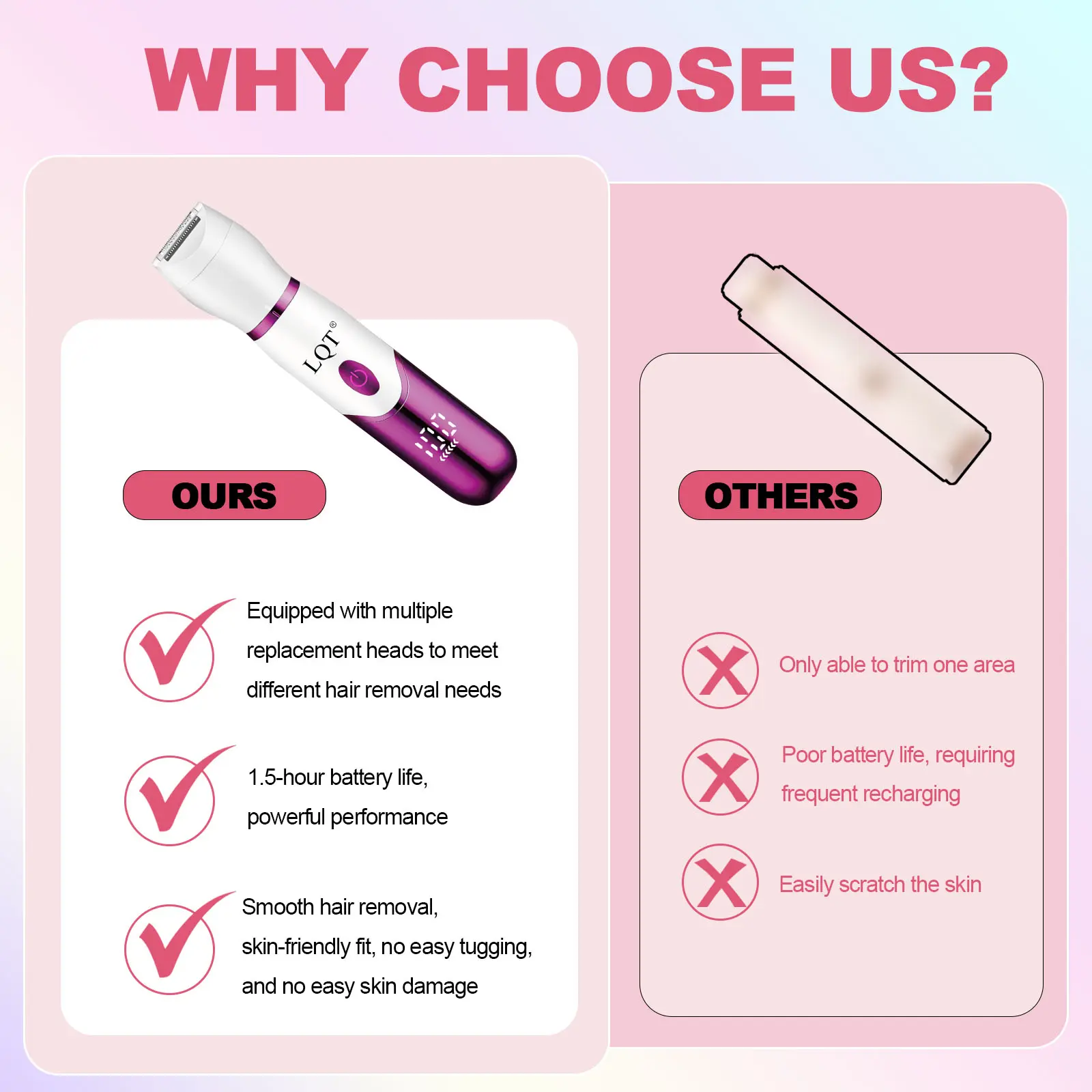 Hypoallergenic & Painless: Blade guards prevent nicks, cuts, and pulling, safe even for sensitive skin.