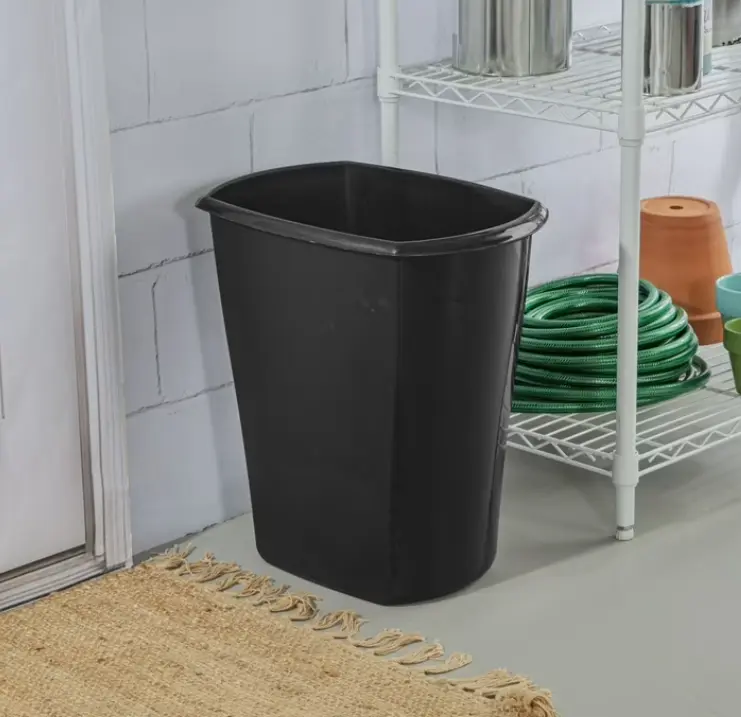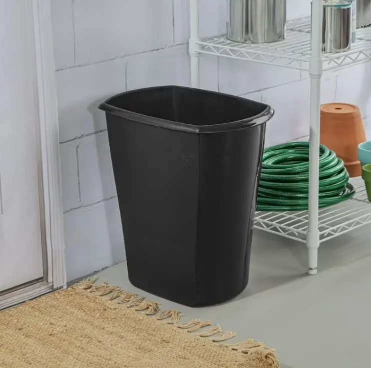10 Gallon Black Plastic Kitchen Trash Can – Open Top Garbage Bin