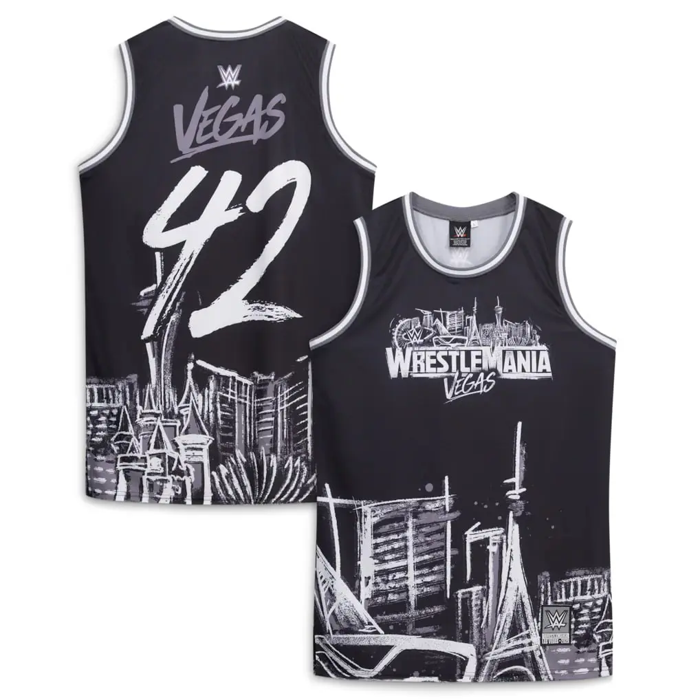 ·Key Features:Black colorwayWrestleMania 42 brandingBasketball jersey style