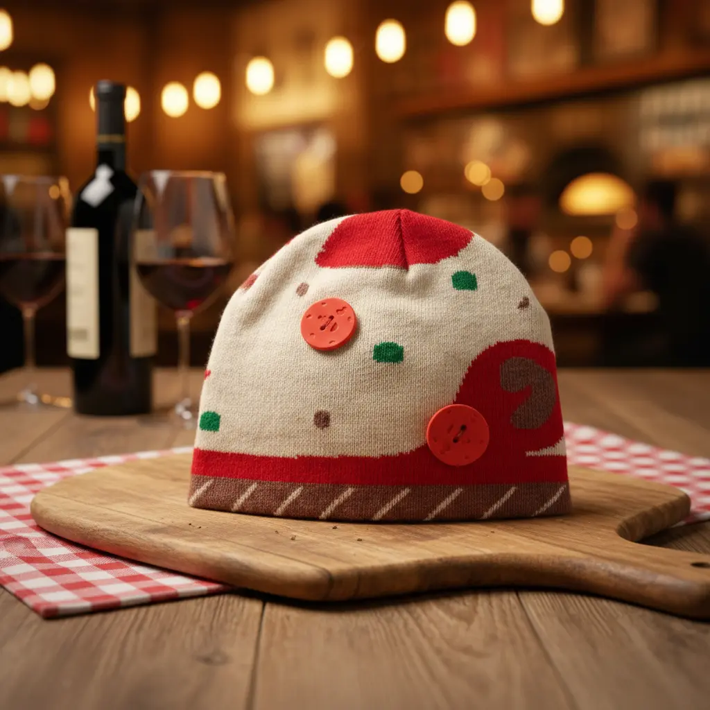 Craving comfort without the calories? This playful handmade beanie brings pizza night vibes to your everyday look. 🍕 It features dimensional pepperoni details and a rich, crusty brown finish. It's a conversation starter that doesn't compromise on coziness. Perfect for any occasion, this beanie is quirky and utterly fun.
