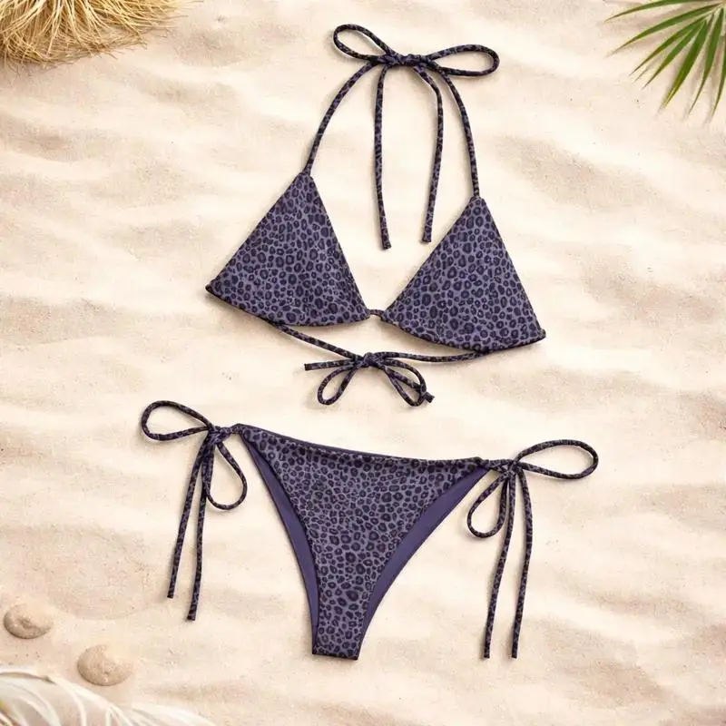 Classic Silhouette: A timeless triangle halter neck paired with high-cut, tie-side bottoms designed to flatter your natural curves.