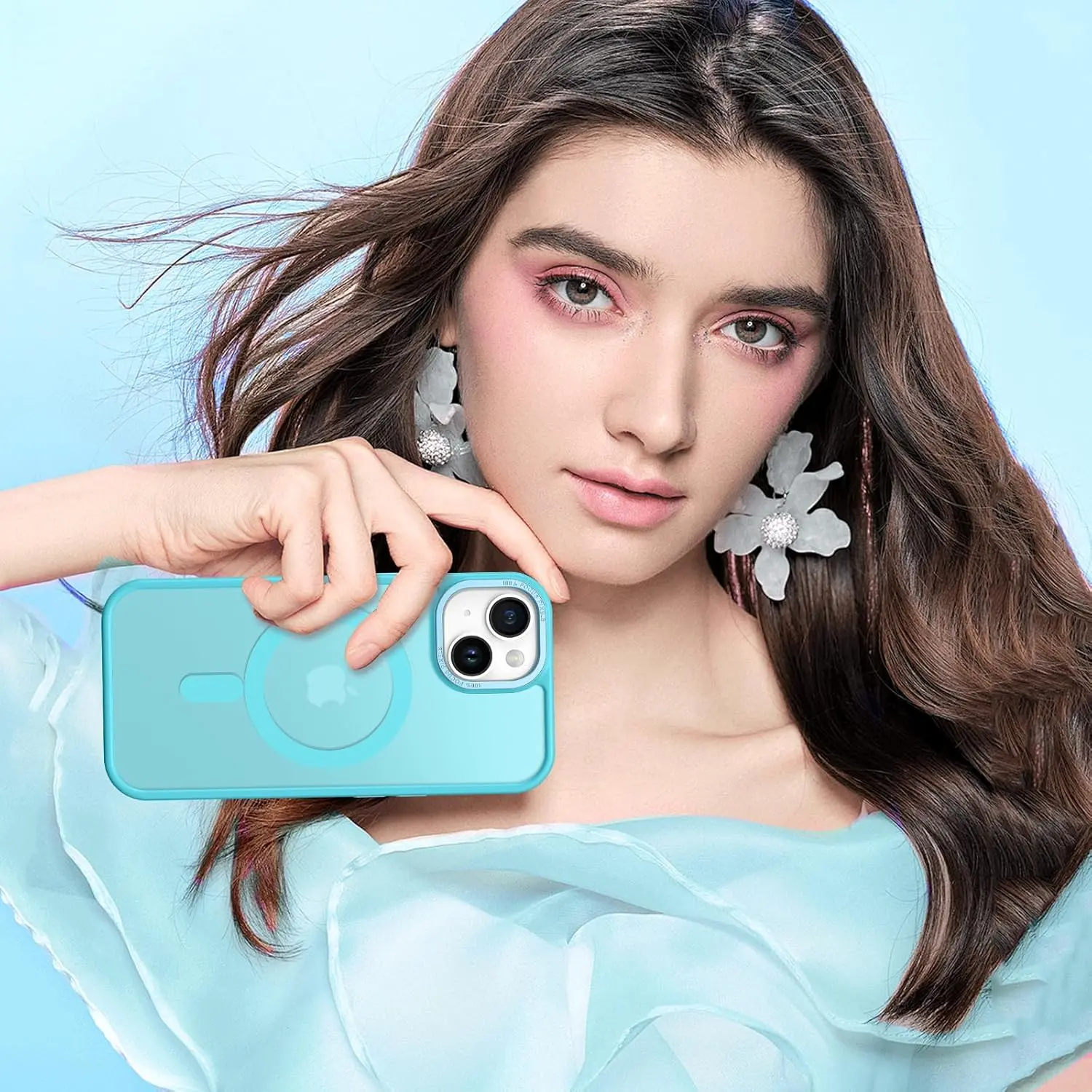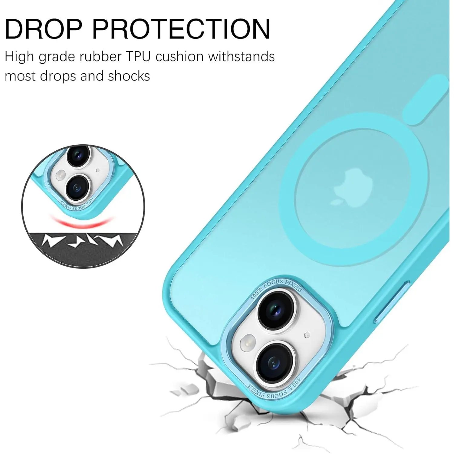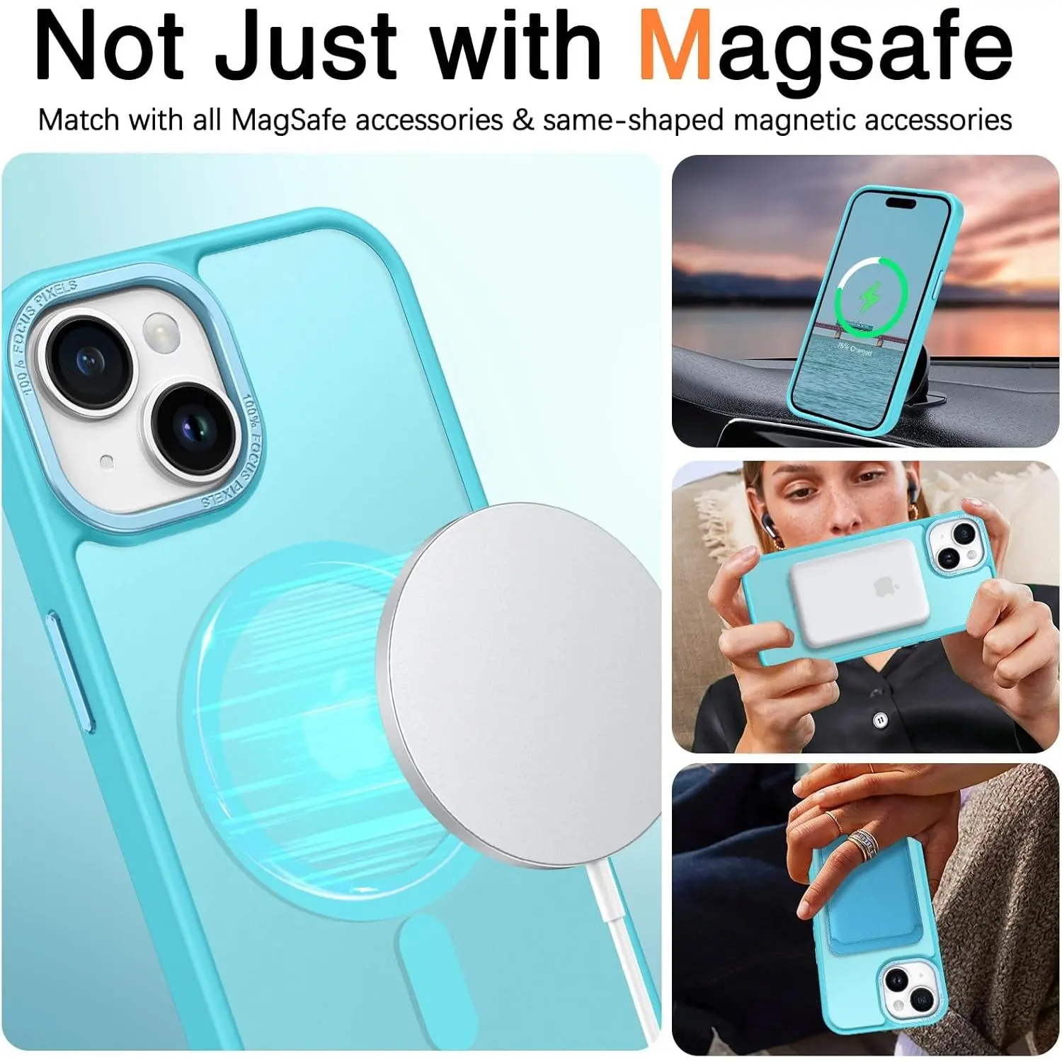 Compatible with iPhone 15 Plus Case, Translucent Matte Slim Shockproof Magnetic Phone case [Compatible with MagSafe] Women Men Girl Boy Protective Cover for iPhone 15 Plus, Teal Blue