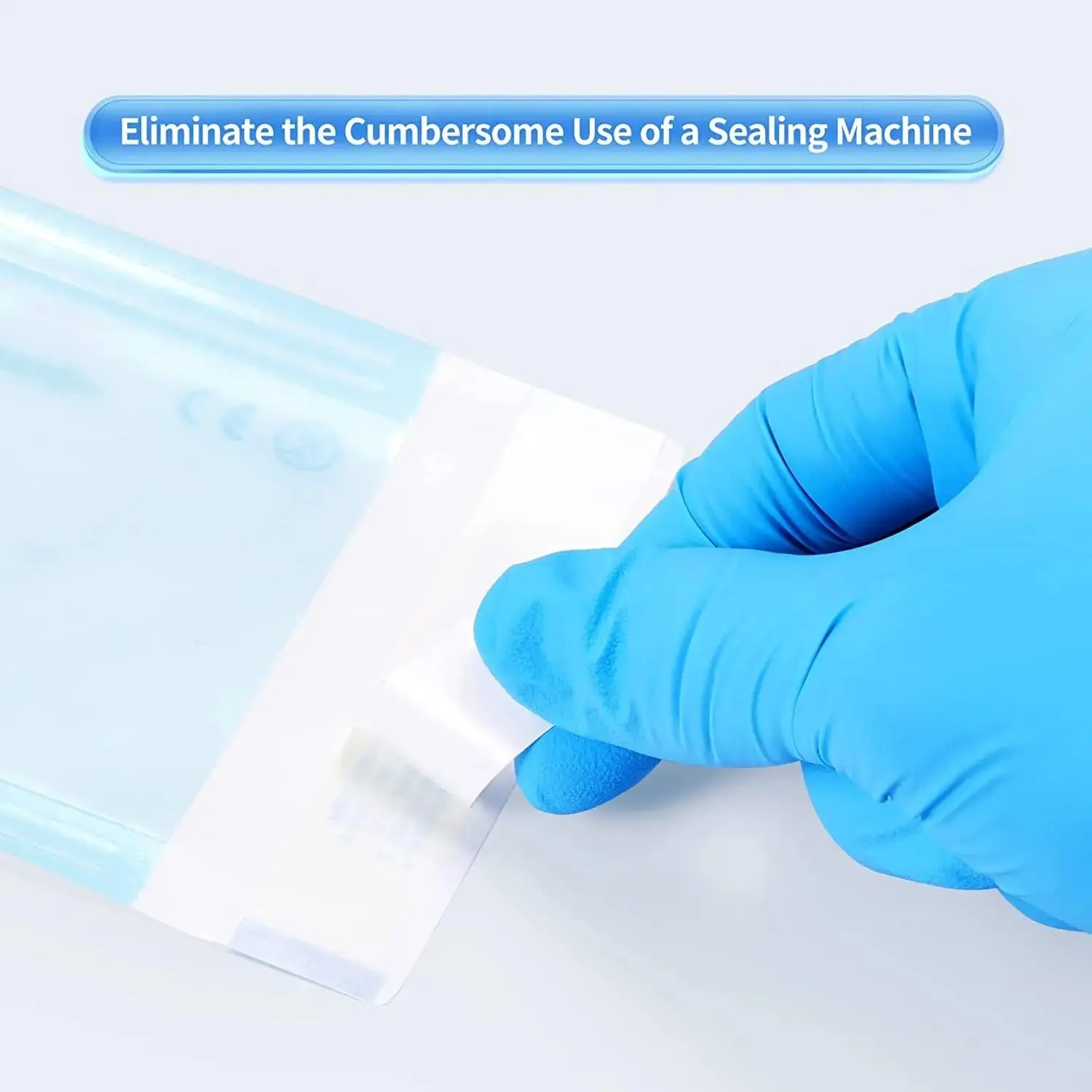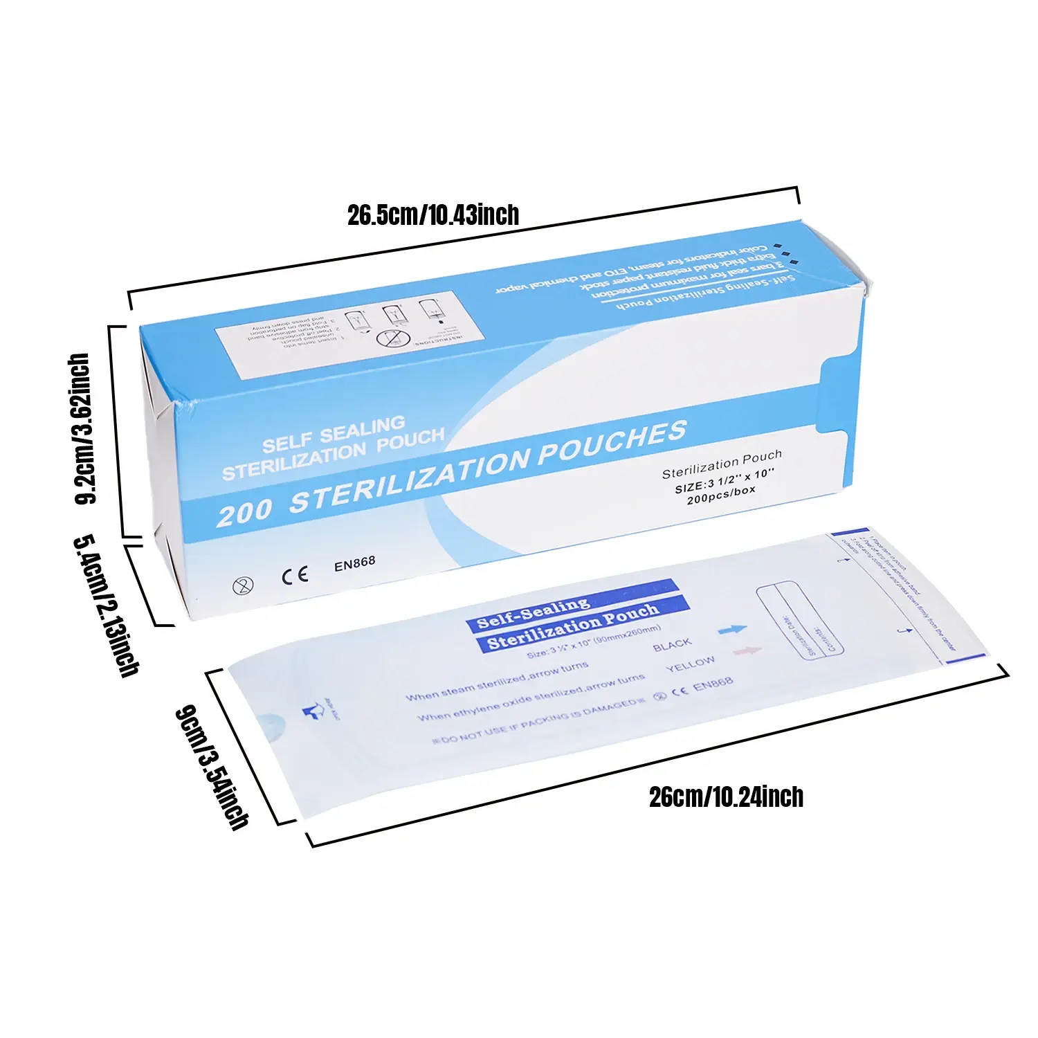 BULK SELF-STERILIZATION BAGS: PlastCare USA provides 1 box of 200 pouches. These sterilizing bags keep teeth cleaning instruments and other dental tools sterilized until their next use. Keep your dental office or lab clean and sterile with these pouches.