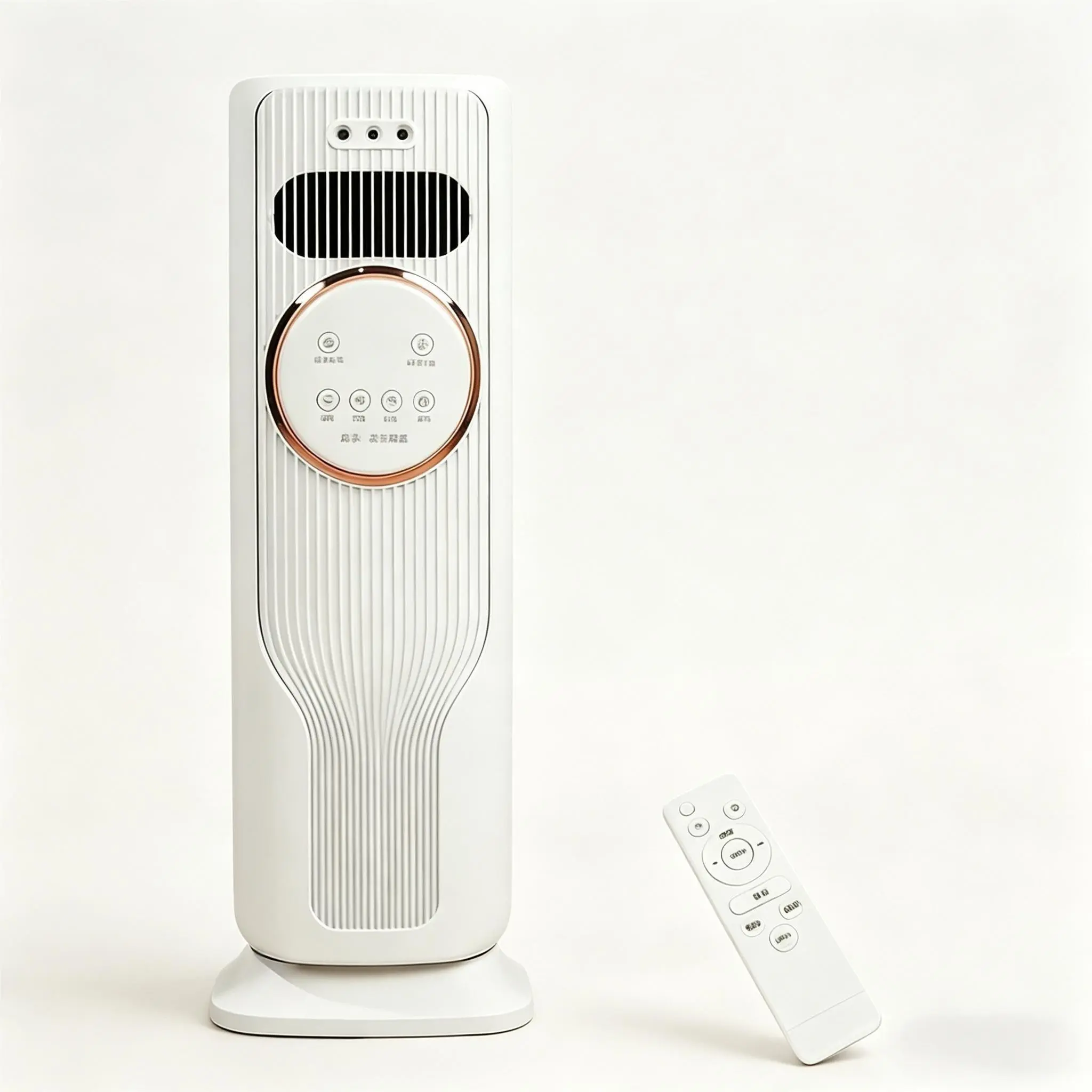 Control the fan and heater effortlessly with the remote. Adjust the 3 speed cooling and 2 heat settings from the comfort of your seat. The no-blade design adds an extra layer of safety. This fan is a practical solution for maintaining a comfortable temperature in any room. Ideal for home, bedroom, or office use.