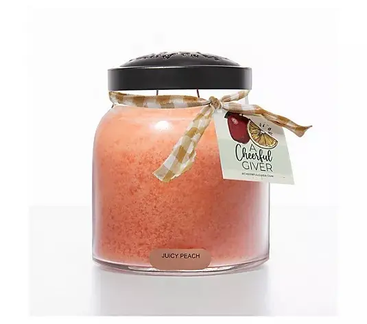 Create a warm and cozy atmosphere with the A Cheerful Giver 34oz Papa Jar Candle. Designed with double wicks for stronger fragrance throw and even burning, this large scented candle is perfect for relaxing nights, home decor, or thoughtful gifts. The embossed metal lid, decorative ribbon, and hang tag add a charming touch to any space.