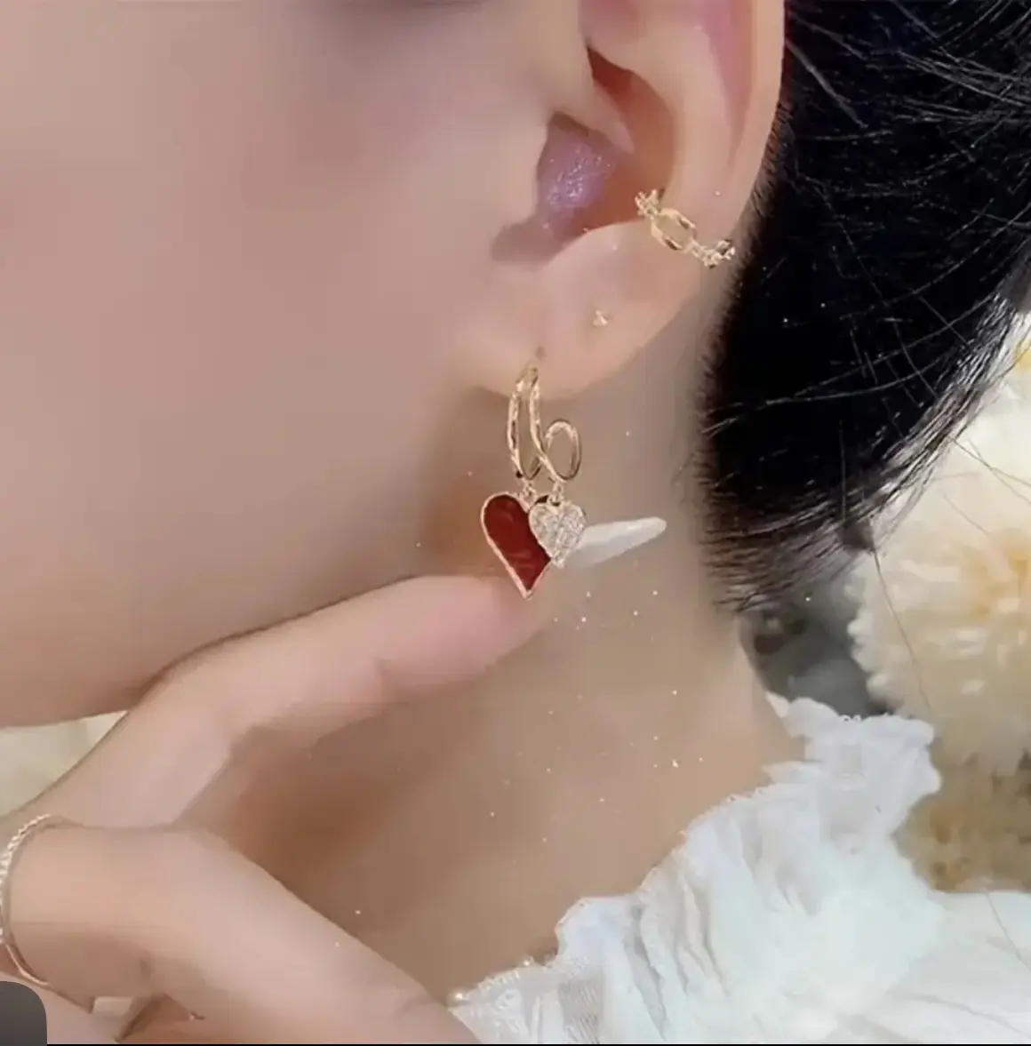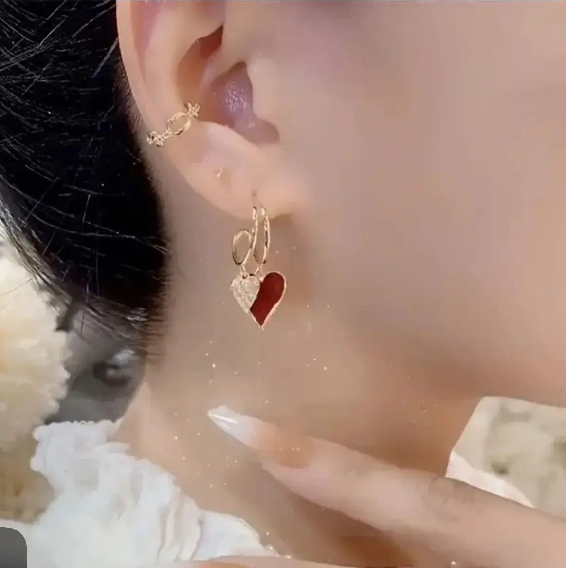 These gold-plated love earrings are perfect for women who appreciate dainty jewelry. The red enamel heart adds a romantic touch, making them ideal for Valentine's Day. #heartearrings #goldhoopearrings #dangleearrings. These earrings are a charming accessory for any outfit.