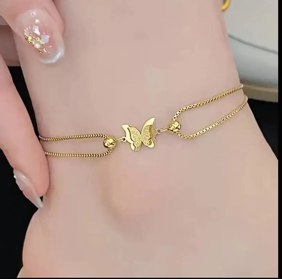 Elevate your summer style with this dainty gold butterfly anklet. Perfect for women, it's a charming addition to your foot jewelry collection. Ideal for beach outings or casual summer days, this anklet adds a touch of boho elegance. #anklet #butterflyanklet #goldanklet