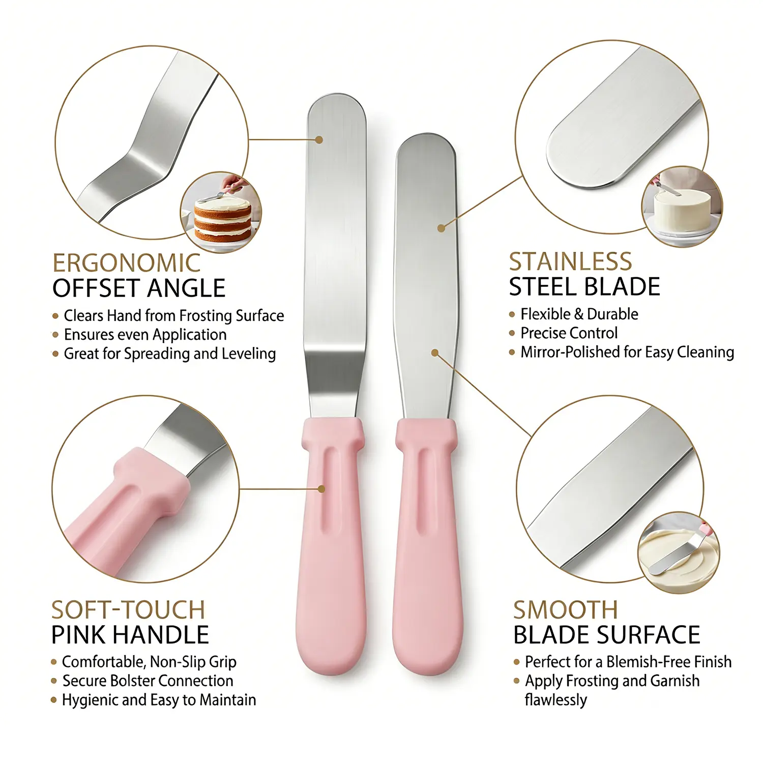2 Stainless Steel Spatulas (For flawless buttercream spreading & smoothing)
