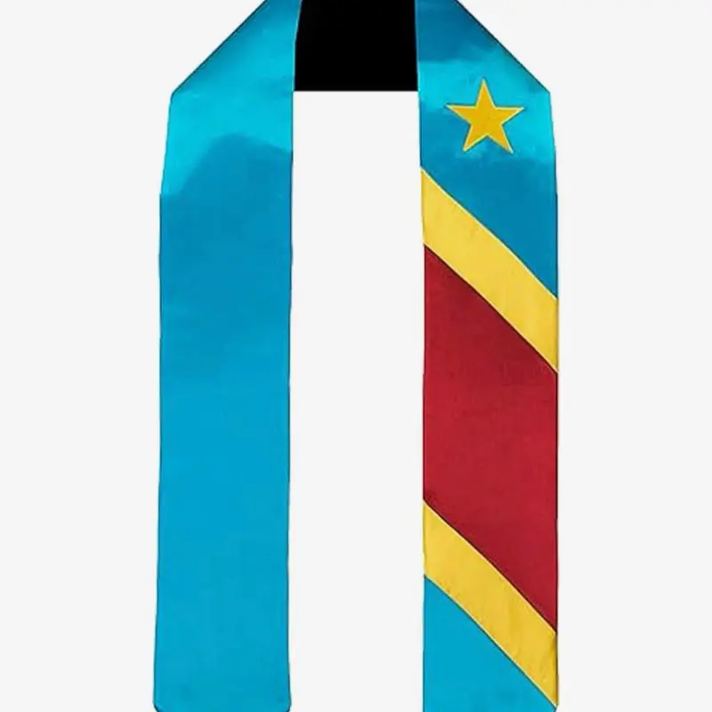 Celebrate your graduation with the Congo graduation sash! This Congolese scarf features the vibrant colors of the RDC flag. Perfect for graduates proud of their Congolese heritage. Display your national pride with this drapeau.