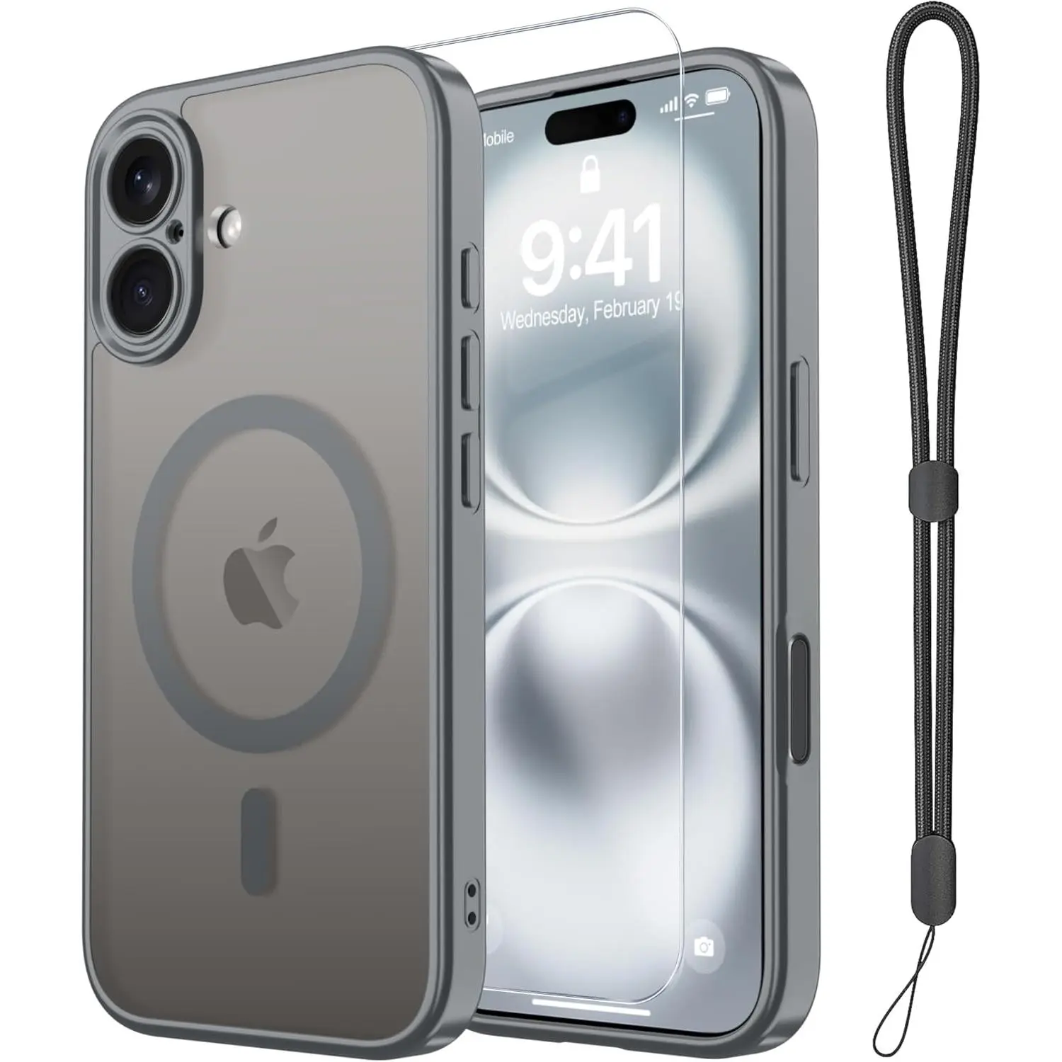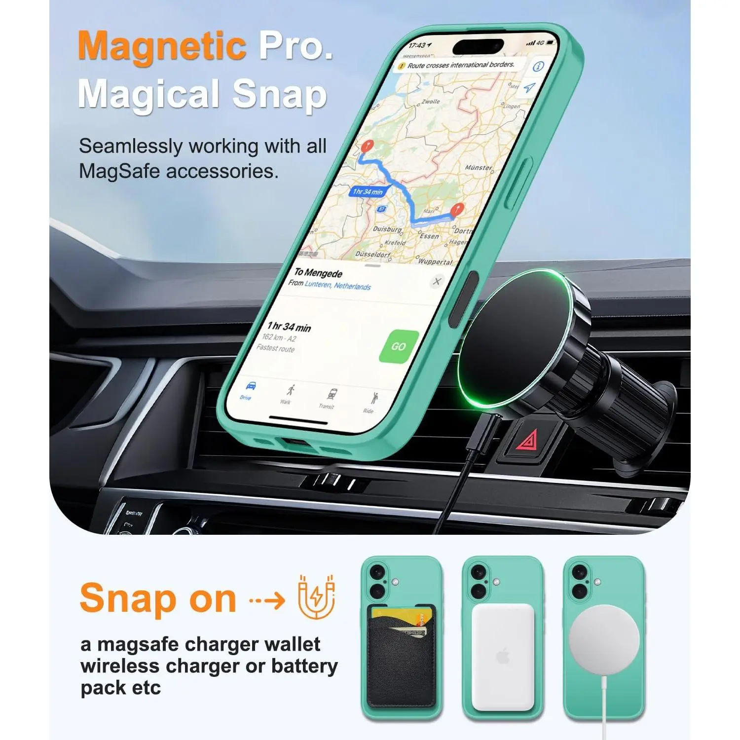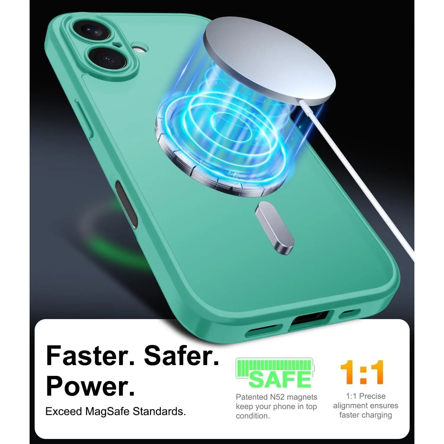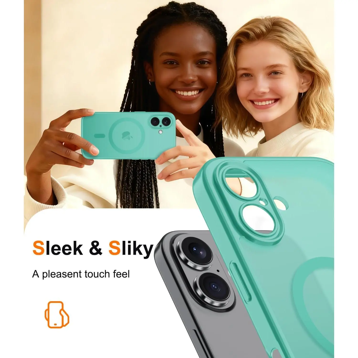 Magnetic for iPhone 16e/17e Case,with Screen Protector+Wrist Strap,Compatible with MagSafe,Camera Protection,Military Grade Drop Protection,Slim Translucent Matte Phone Cover,Turquoise