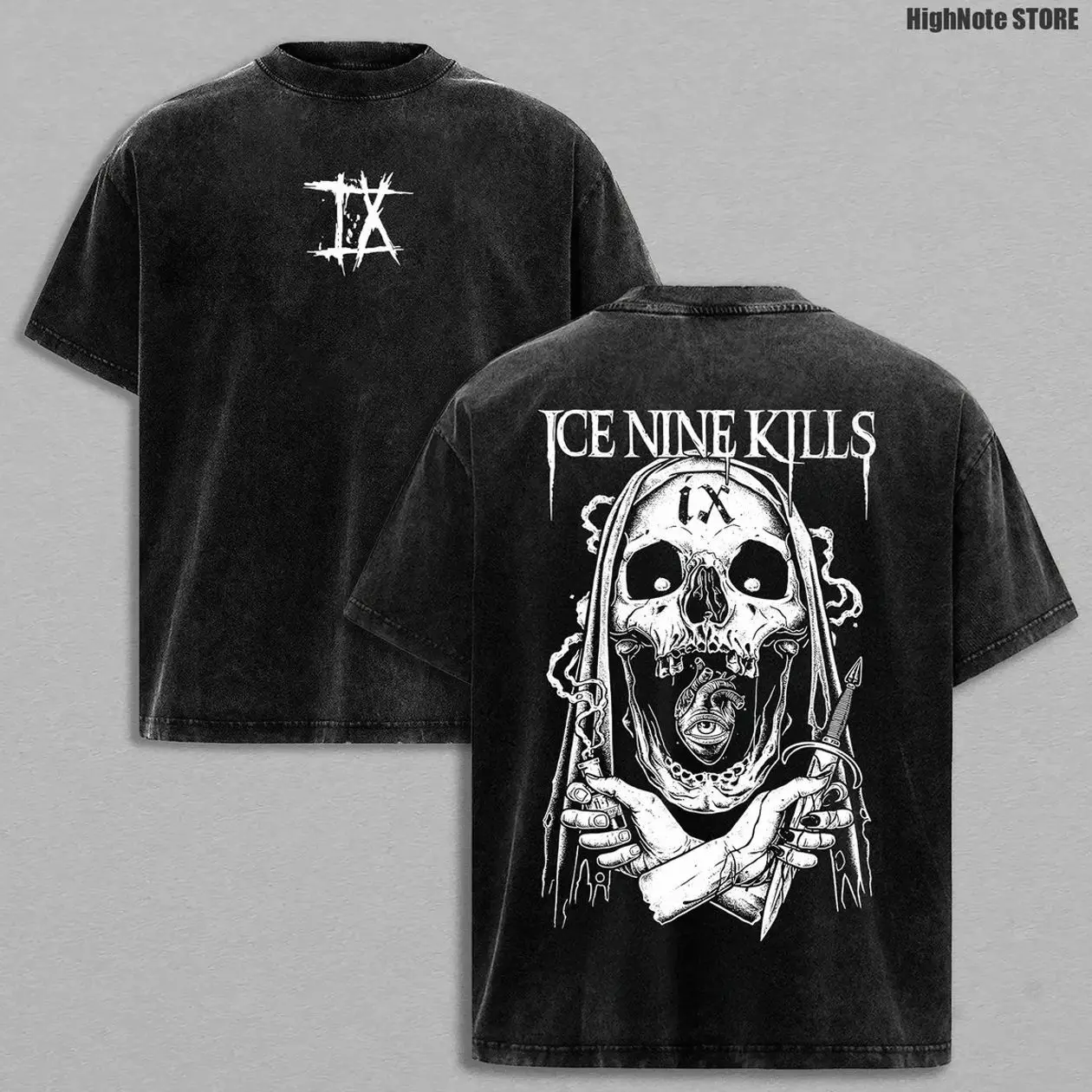 Ice Nine Kills Shirt Vintage Acid Washed Oversized Graphic T Shirt, INK Horror Skull Knife Gothic Metal Band Tee, Dark Aesthetic Streetwear Heavy Cotton Soft Unisex Top, Men Wear Pump Cover, Emo Metalcore Fan Gift UVM