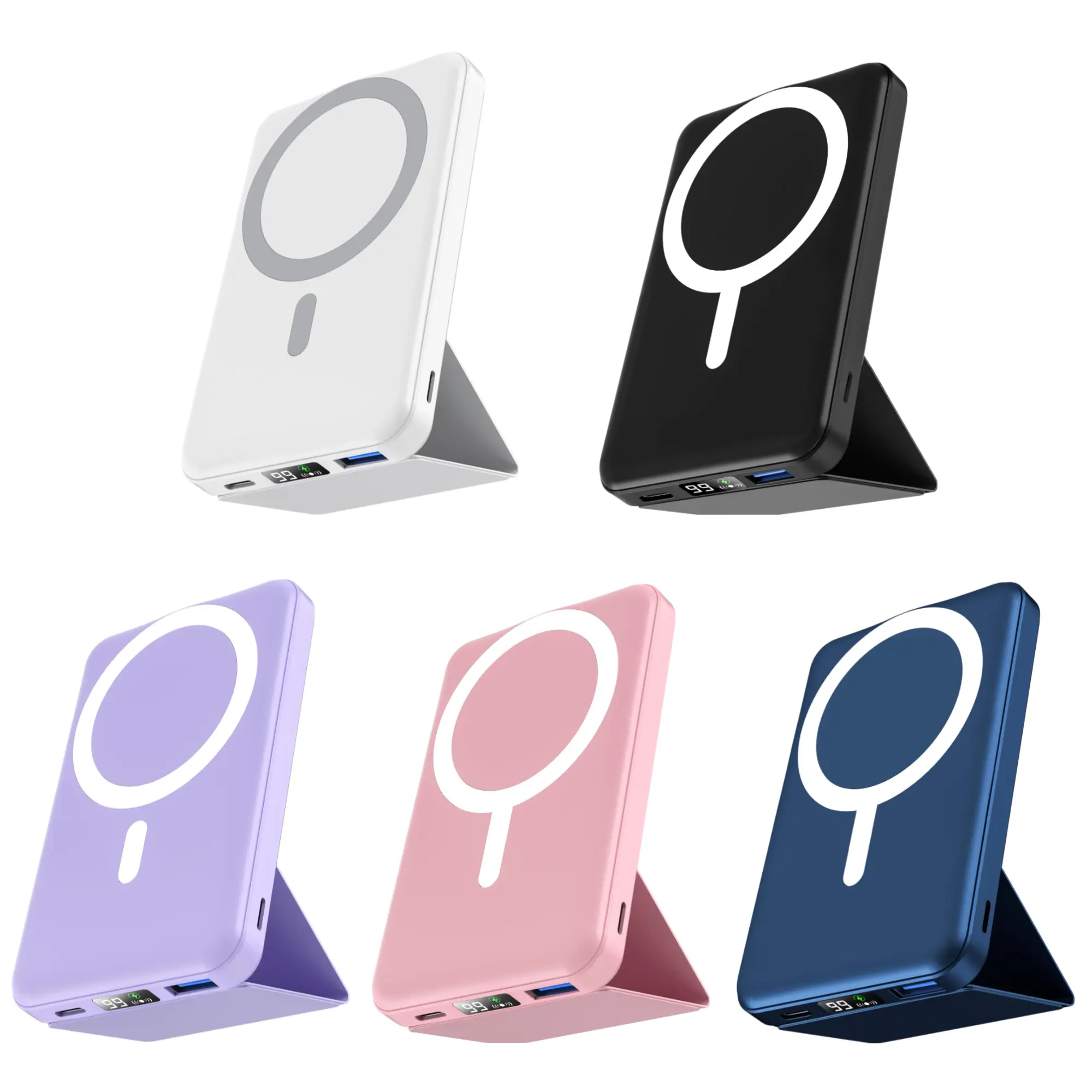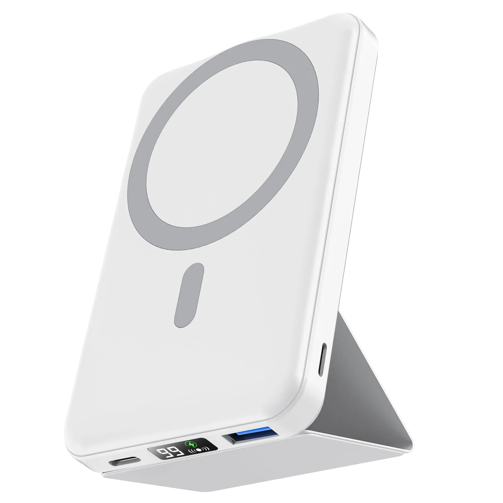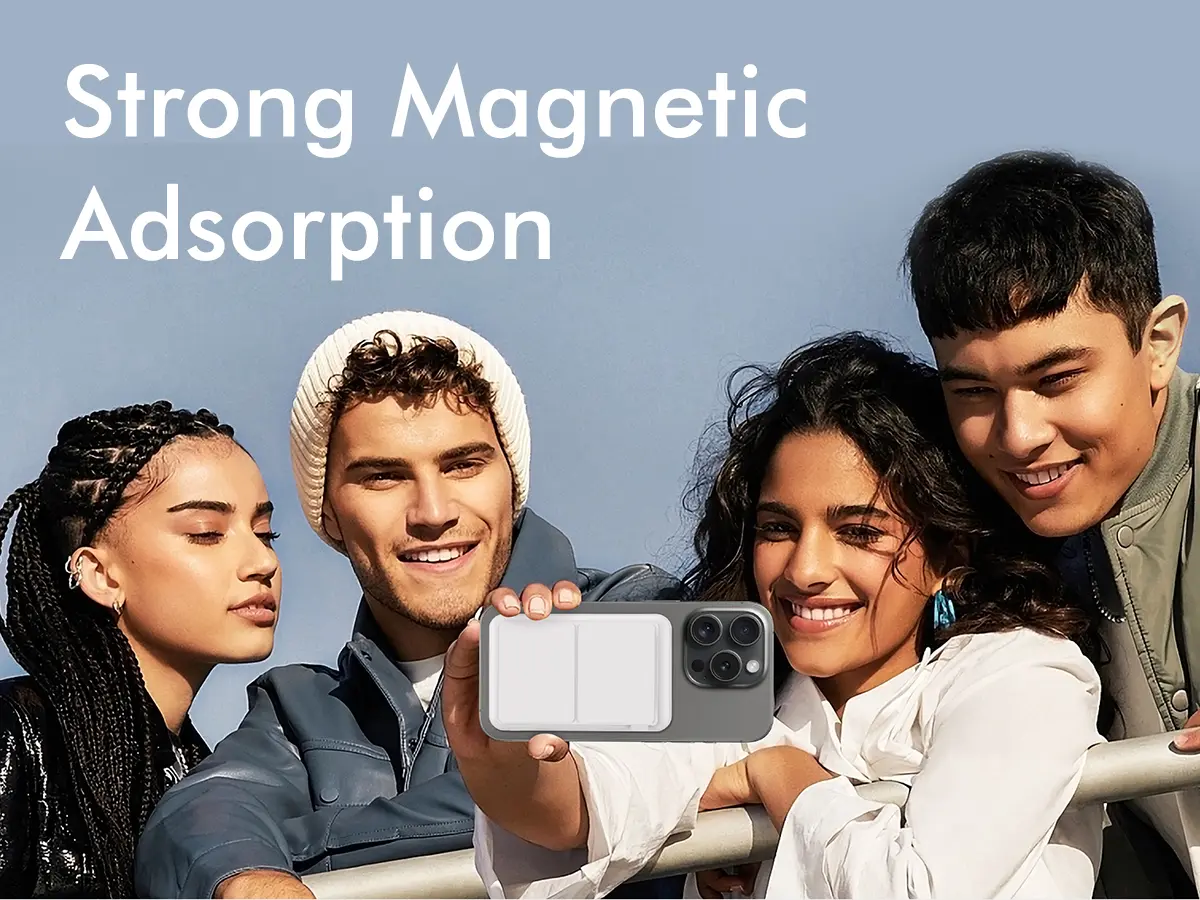 This magnetic power bank features a built-in foldable stand that securely supports your iPhone (in both landscape and portrait orientations), freeing you from the constraints of charging cables. The stand is robust and durable—strong enough to firmly hold your phone—allowing you to go hands-free while easily watching videos or making video calls with friends.